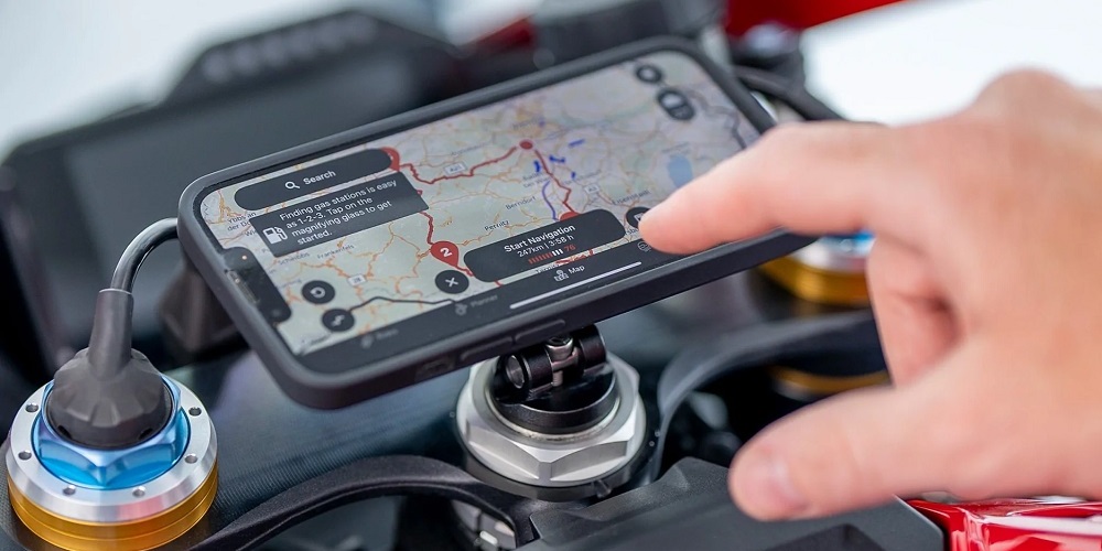 If you don’t want to invest in a specific sat nav device, there’s always your smartphone, which can be loaded with apps like Google Maps and Apple Maps which provide directions and traffic data. In order to safely use a mobile phone for directions while on a motorcycle, you will need a motorcycle phone mount, which secures your device to your handlebar. There are many phone mounts and phone cases available, with either device-specific or universal fit.