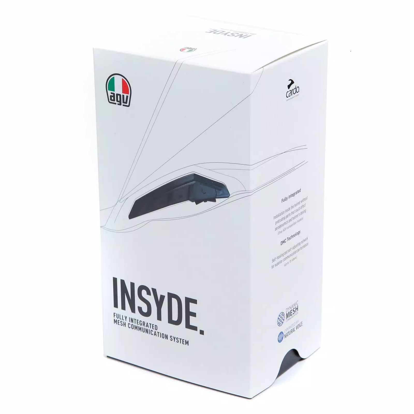 The AGV Insyde motorcycle Bluetooth intercom is the first system to feature DMC™ Dynamic Mesh Communication technology integrated with an AGV motorbike helmet. Developed exclusively by Cardo for the AGV Tourmodular and AGV K7.