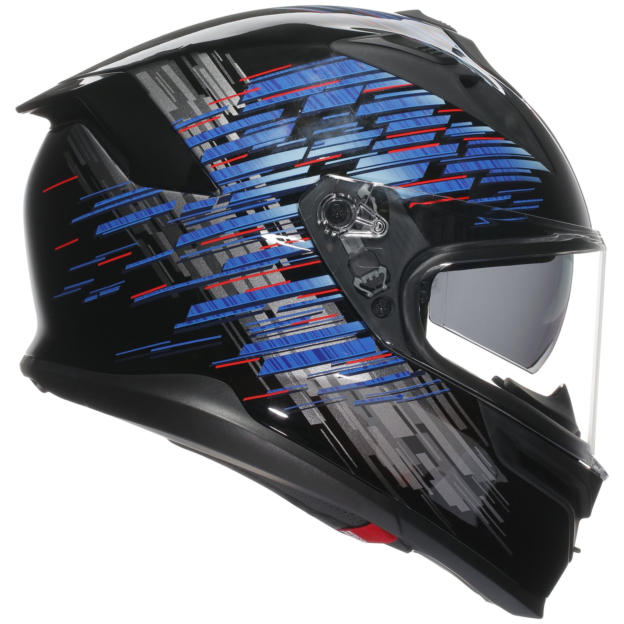 Every detail prioritises the riderโs safety. The base edge profile minimises the risk of collarbone impact โ a particularly vulnerable area during accidents โ in line with AGVโs innovation that is now a global racing standard. The quick-release cheek pad system facilitates swift removal in emergencies, reducing the risk of further injury.