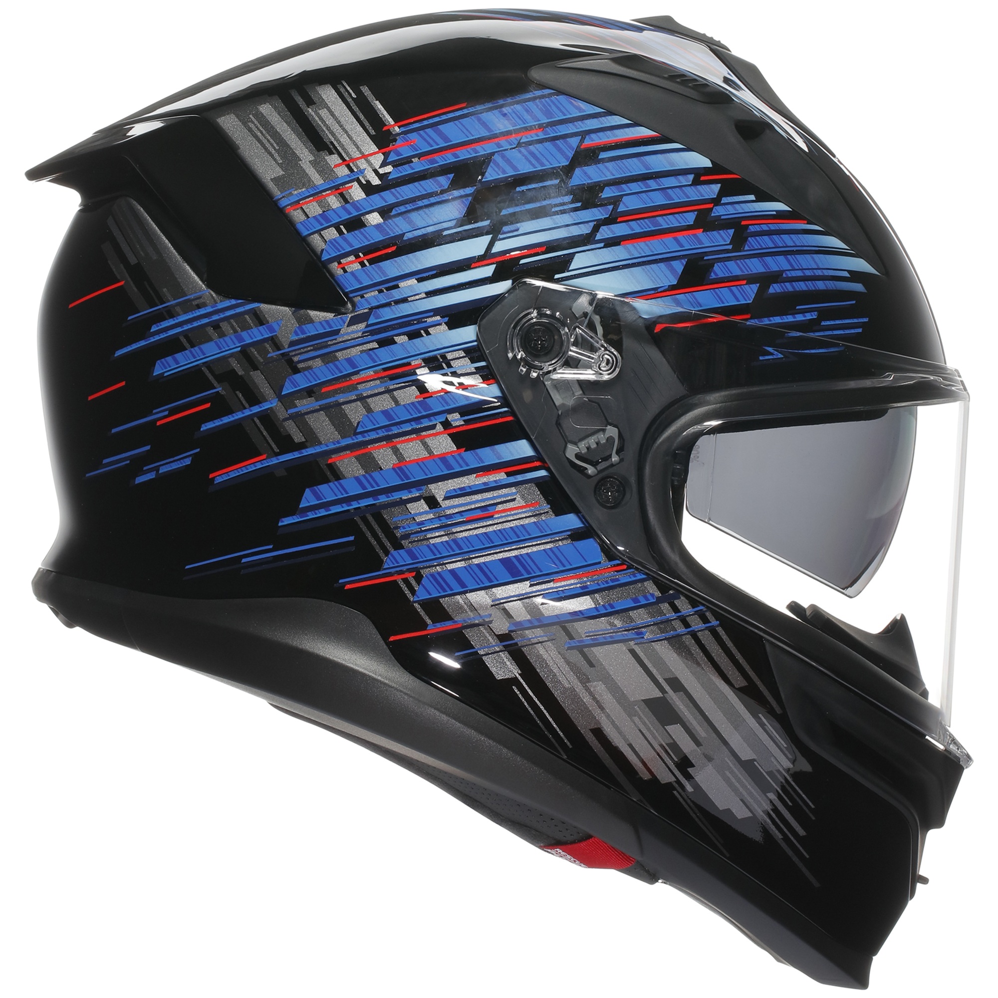 Every detail prioritises the rider’s safety. The base edge profile minimises the risk of collarbone impact – a particularly vulnerable area during accidents – in line with AGV’s innovation that is now a global racing standard. The quick-release cheek pad system facilitates swift removal in emergencies, reducing the risk of further injury.