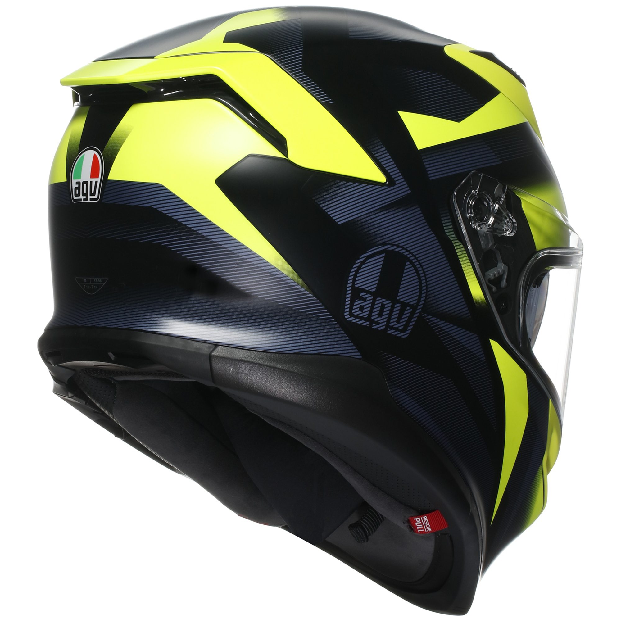 Every detail prioritises the riderโs safety. The base edge profile minimises the risk of collarbone impact โ a particularly vulnerable area during accidents โ in line with AGVโs innovation that is now a global racing standard. The quick-release cheek pad system facilitates swift removal in emergencies, reducing the risk of further injury.