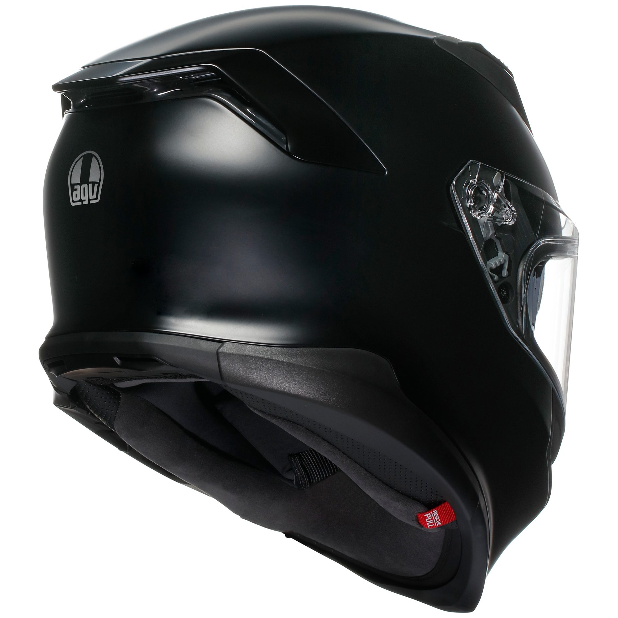 Every detail prioritises the riderโ€™s safety. The base edge profile minimises the risk of collarbone impact โ€“ a particularly vulnerable area during accidents โ€“ in line with AGVโ€™s innovation that is now a global racing standard. The quick-release cheek pad system facilitates swift removal in emergencies, reducing the risk of further injury.