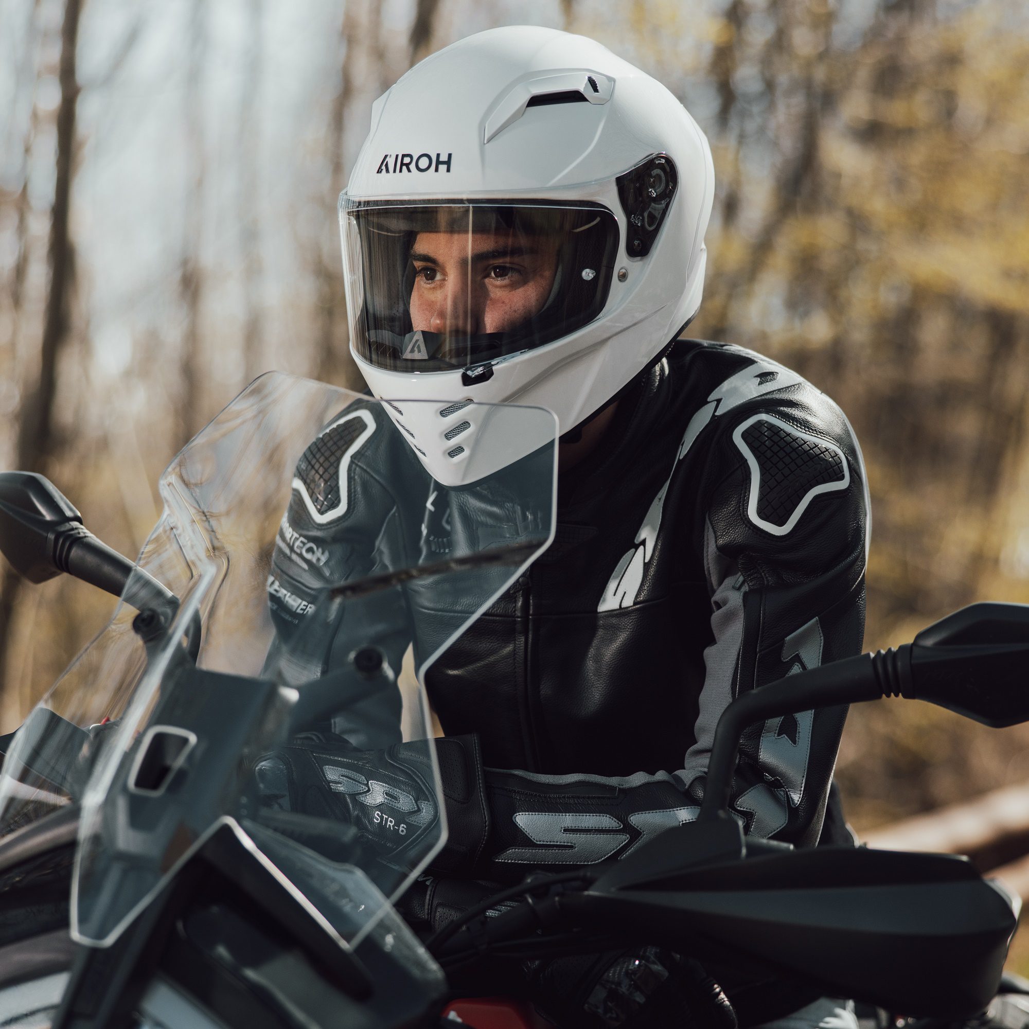 The Airoh Connor plain motorcycle helmet is a great choice for young riders and those looking to not break the bank without compromise. Taking inspiration from the wind, The Airoh motorbike helmet will accompany you to any place you need or want to reach on your motorbike. Sharp lines, captivating graphics and race-oriented equipment make it the must-have riding helmet of the season.