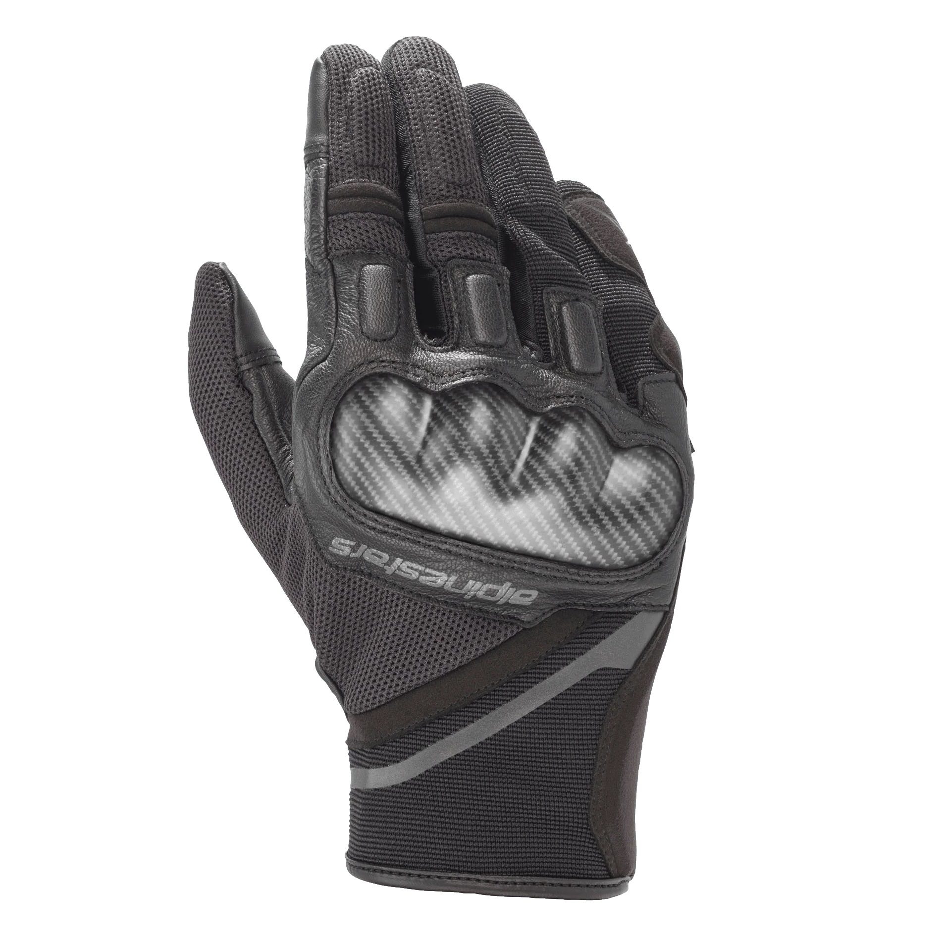 Light, aggressively styled and highly durable, the Alpinestars Chrome motorcycle gloves are a great choice for sports touring riders. Constructed with a durable multi-panel main shell as well as mesh in the upper, the riding gloves are a fantastic riding companion through the summer months. A robust carbon look hard knuckle guard works in conjunction with reinforcements throughout to deliver ample safety. The short cuff Chrome Glove also has touchscreen compatible fingertips for use with GPS systems and smartphones.