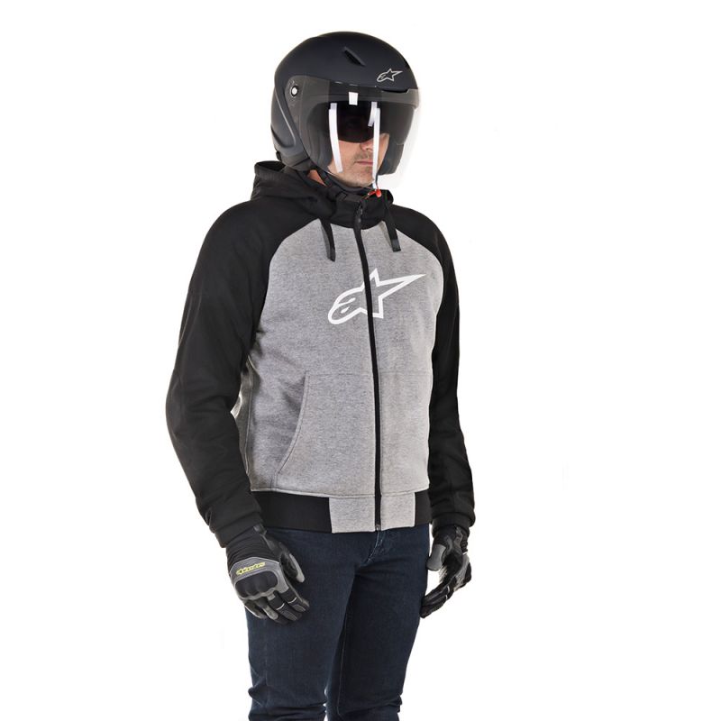 The Alpinestars Chrome Sports motorcycle hoodie is a reinforced and lightweight motorbike hoodie perfect for riders looking to do away with taking a second set of clothing with them on their journeys. Offers excellent wind proofing and water resistance, making it a convenient urban riding jacket for city living.