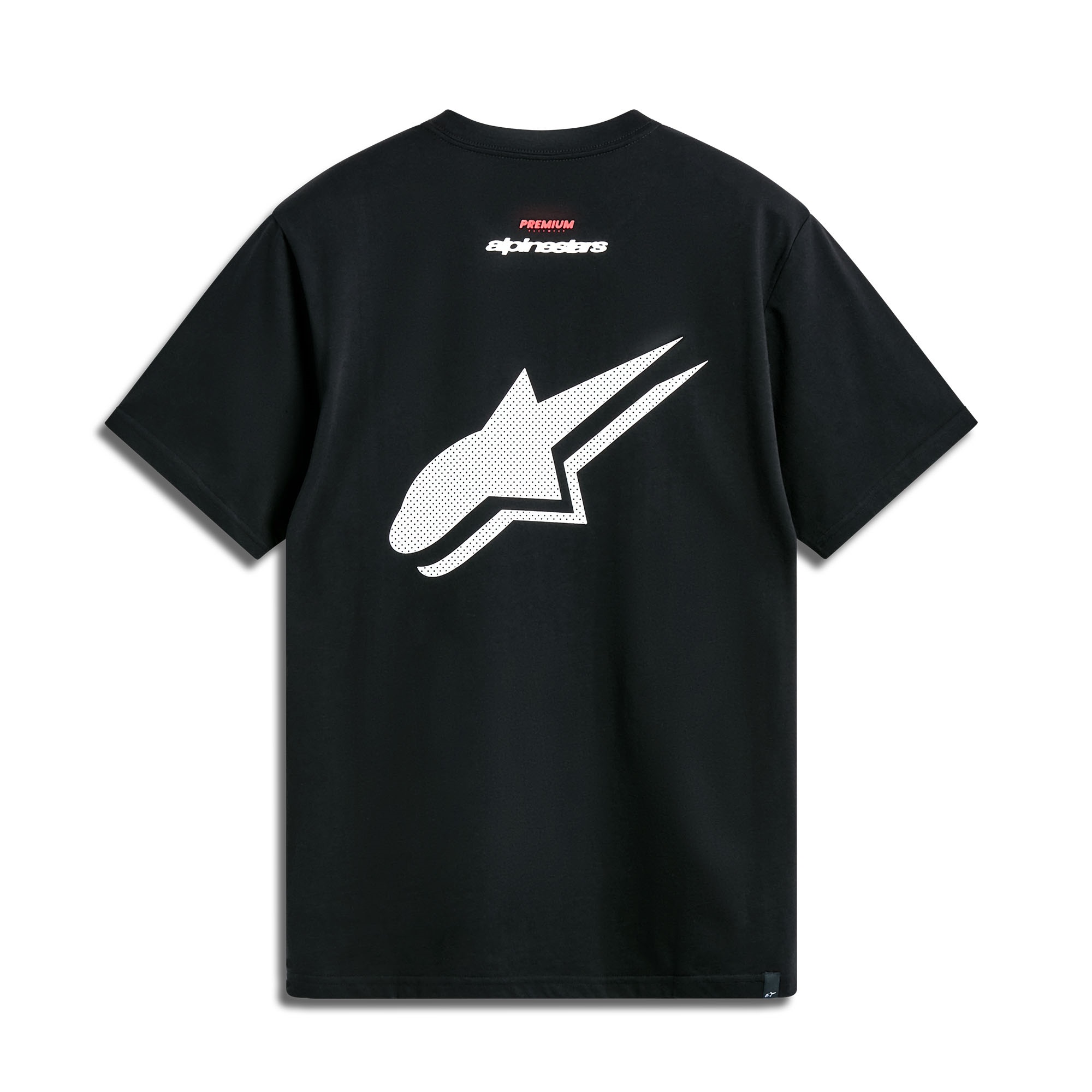 Alpinestars perforated logo at back and front chest logo art. Soft hand print.