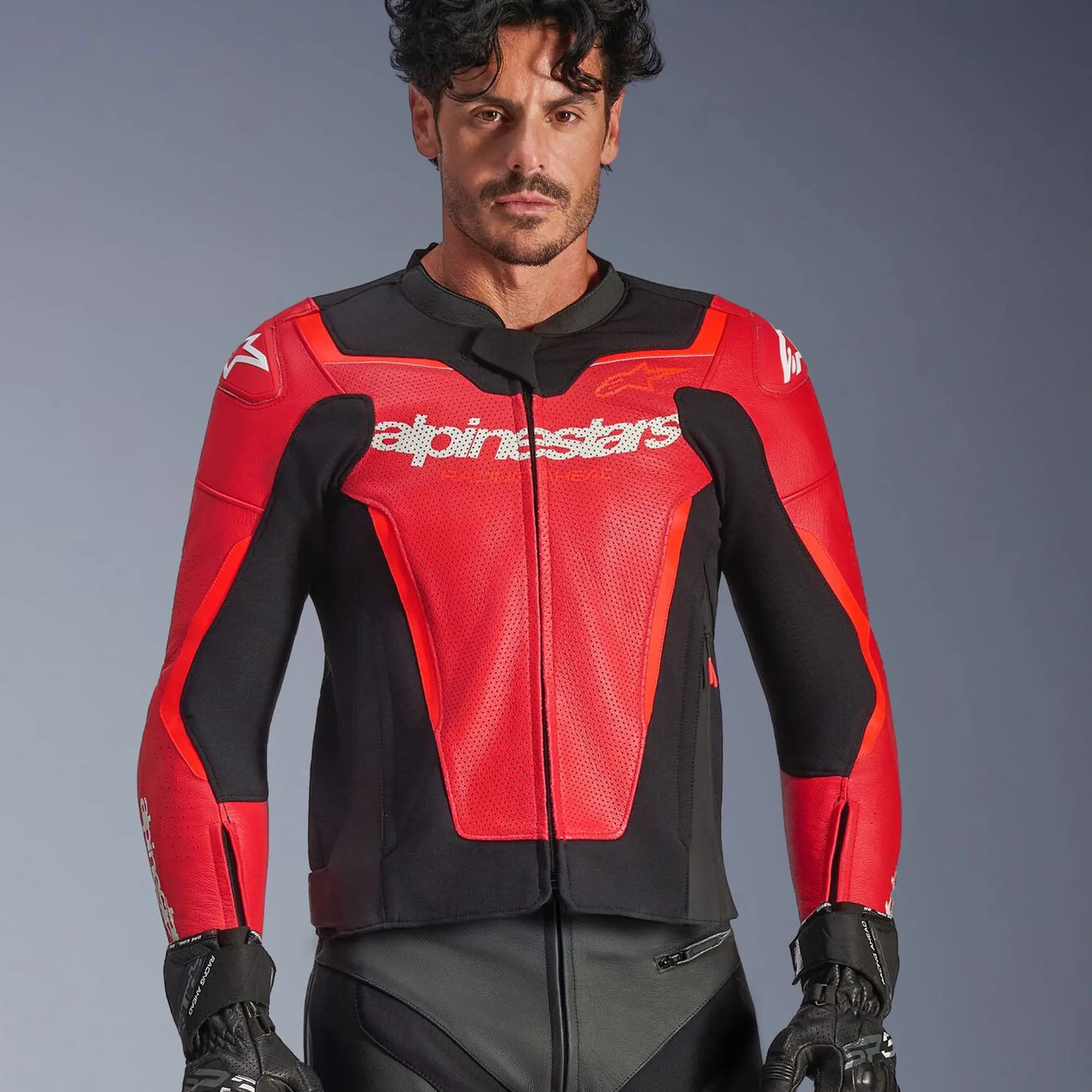 Alpinestars GP Force Airflow v2 Leather Motorcycle Jacket – Red/Red Fluo
