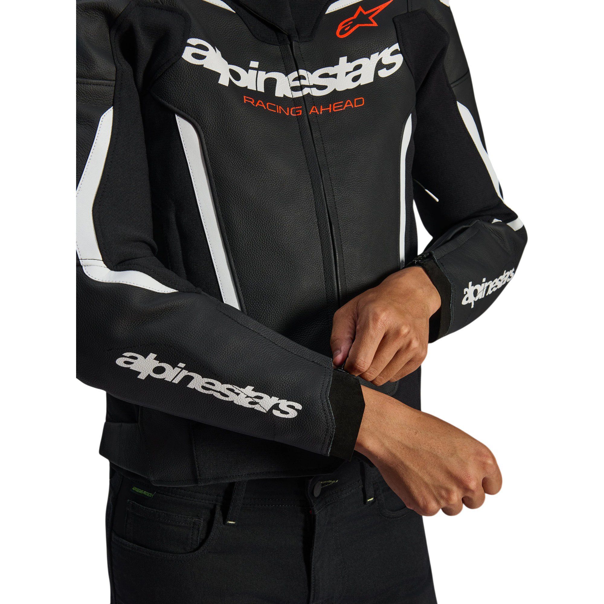 Strategically positioned accordion stretch panel inserts have been designed to accommodate an Alpinestars Airbag System.