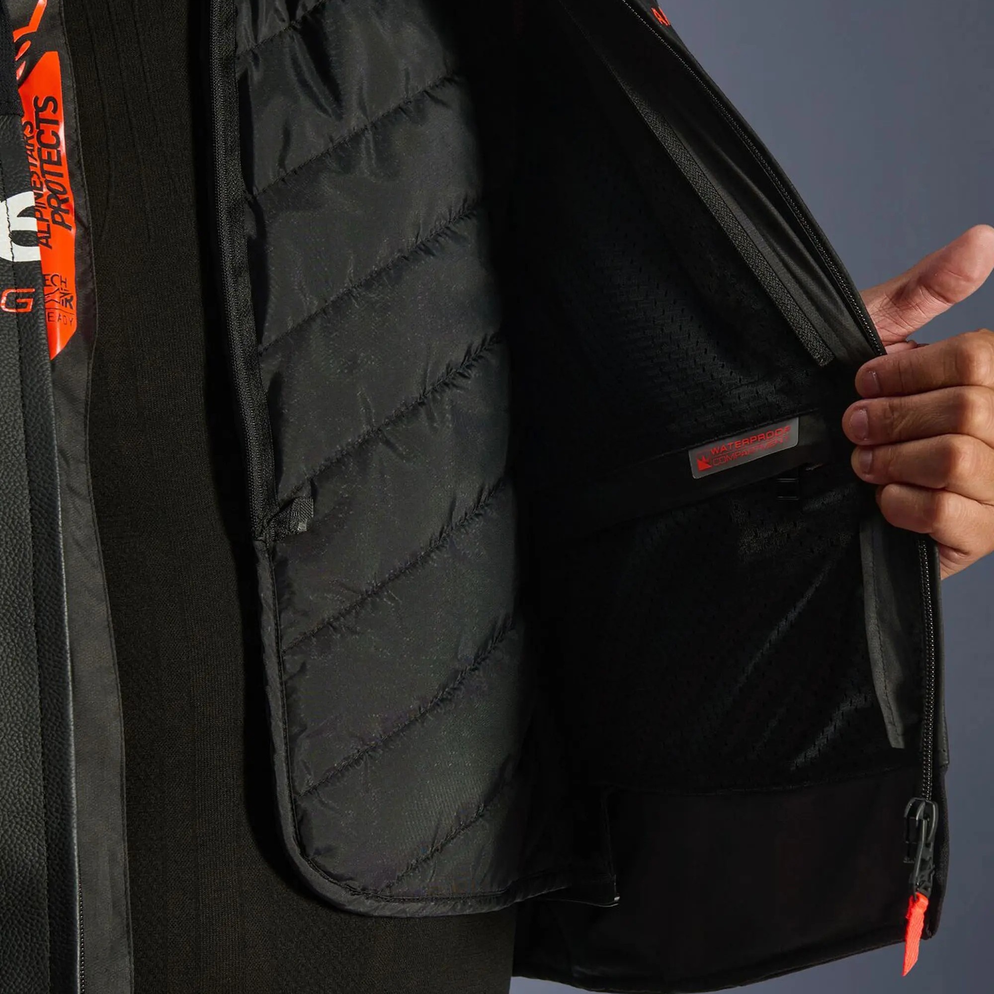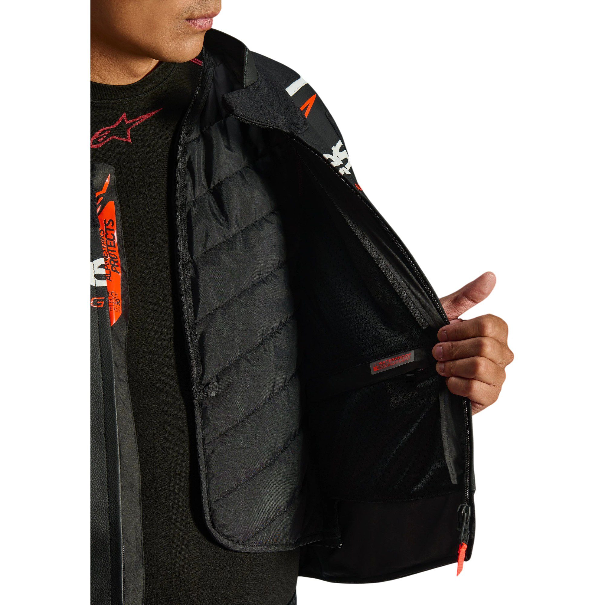 The chest pad compartment is designed to accommodate Alpinestars divided chest protectors (available as accessory upgrades).
