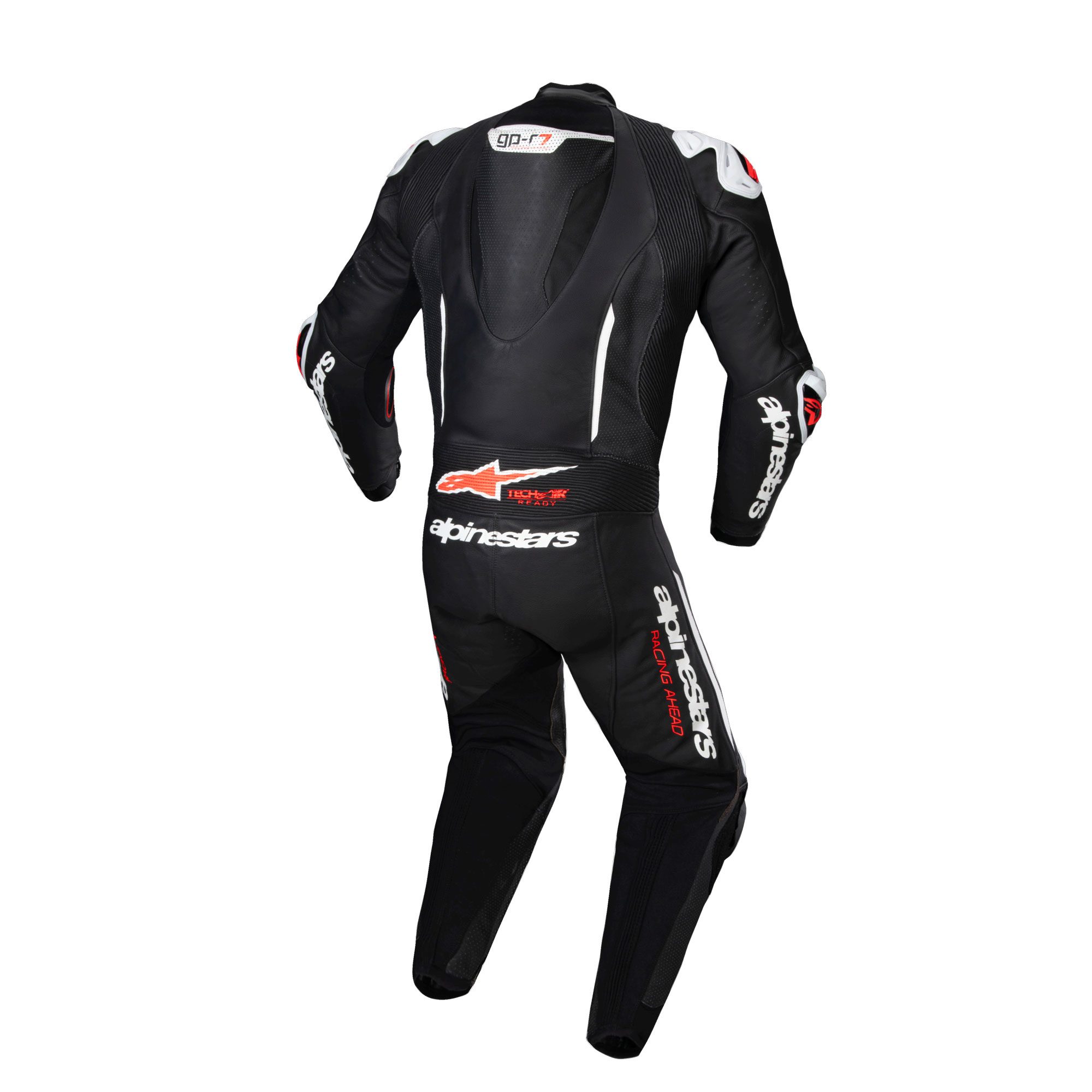 Pre-curved arms, legs and body, with extended multi-directional leather accordions at the shoulder blades, lower back, and knees for an enhanced โRace Fitโ.