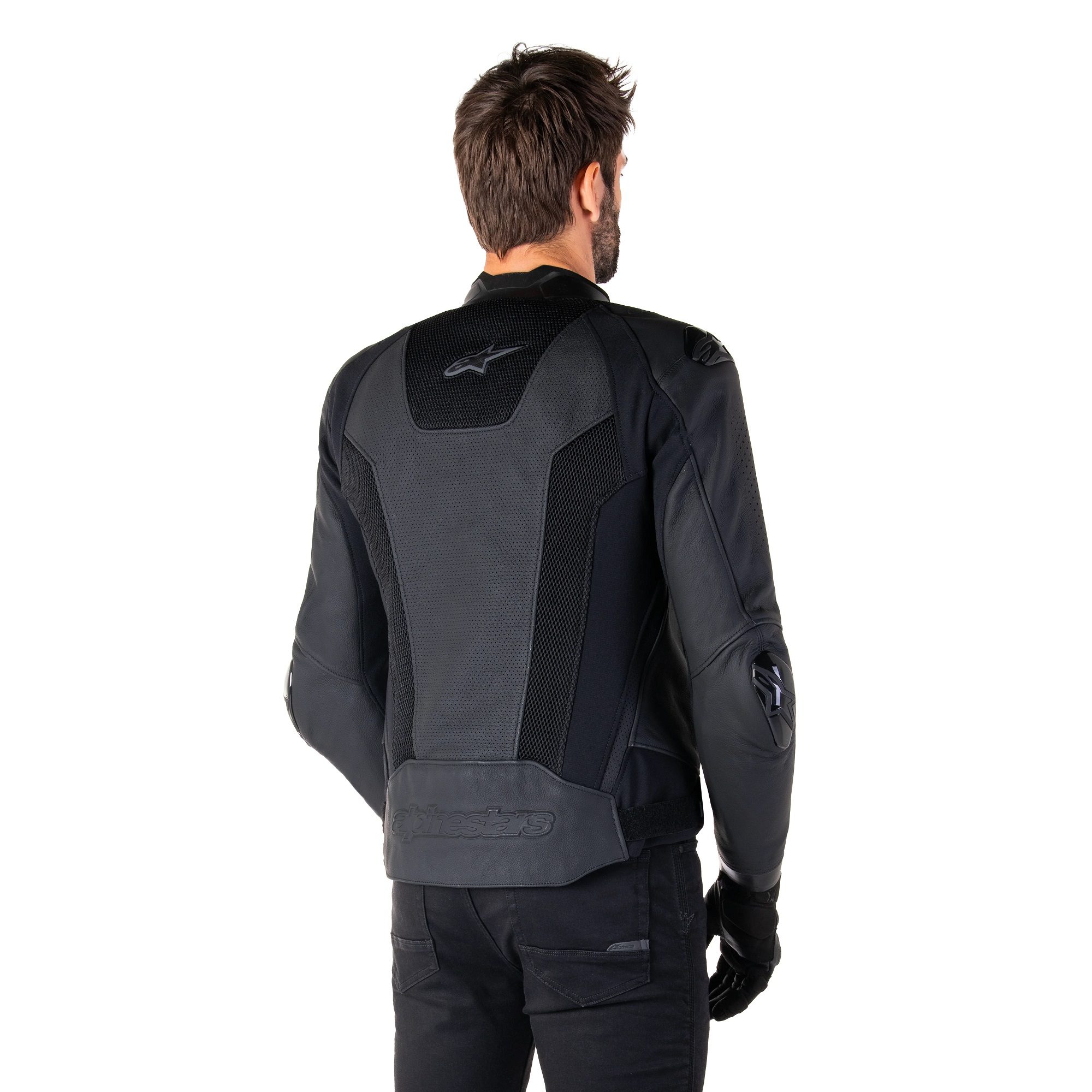 The Alpinestars Missile v3 Airflow leather motorcycle jacket is a premium racing sport jacket derived directly from the MotoGP itself. The leather riding jacket incorporates advanced levels of racing technology to deliver premium protection performance, comfort and airflow. The motorbike jacket offers leading protective technology, which including seamless DFS, phantom black shadow protectors in TPU on the external shoulders and Alpinestars Nucleon PLASMA Pro Level 2 protectors in the shoulders and elbows.