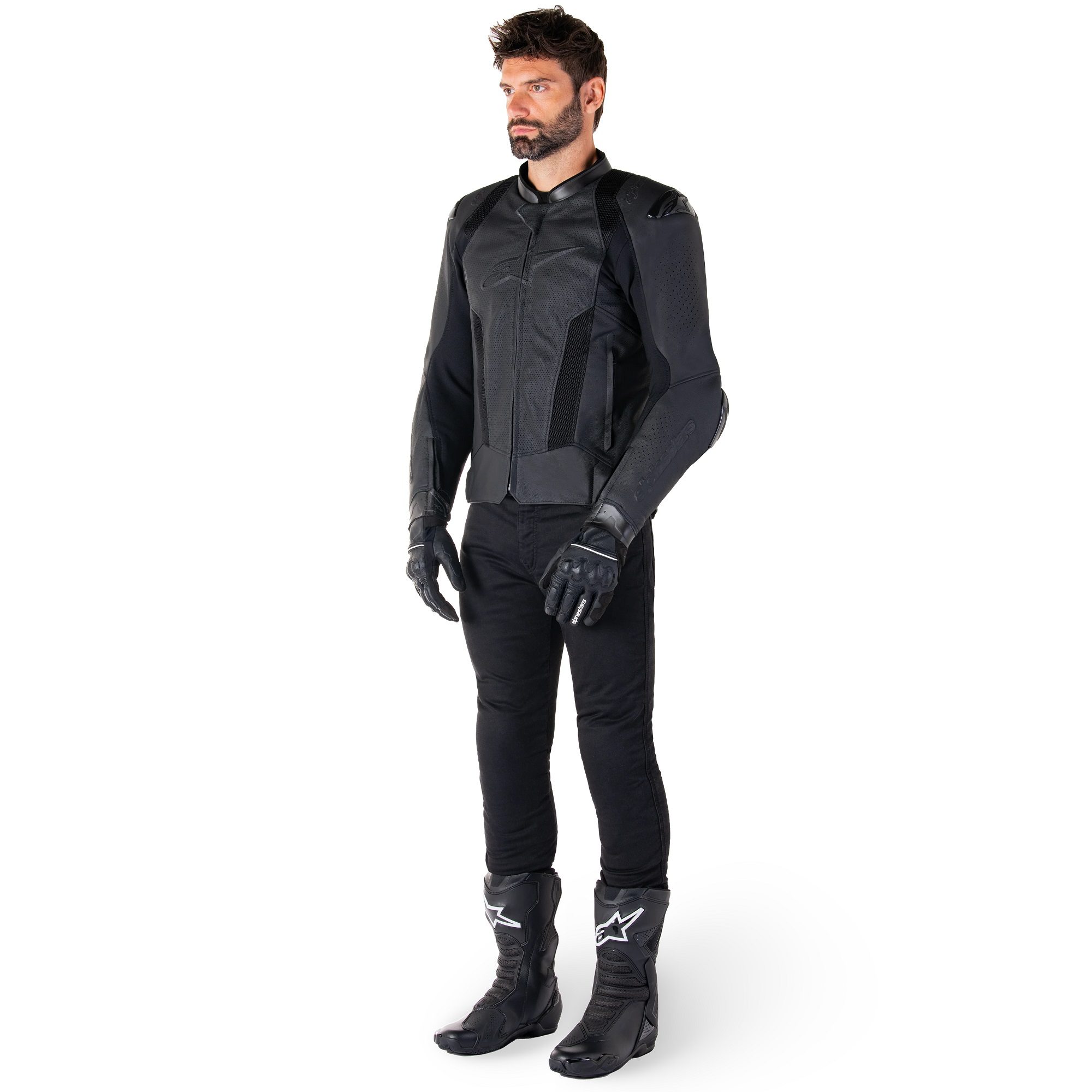 The Alpinestars Missile v3 Airflow leather motorcycle jacket is a premium racing sport jacket derived directly from the MotoGP itself. The leather riding jacket incorporates advanced levels of racing technology to deliver premium protection performance, comfort and airflow.