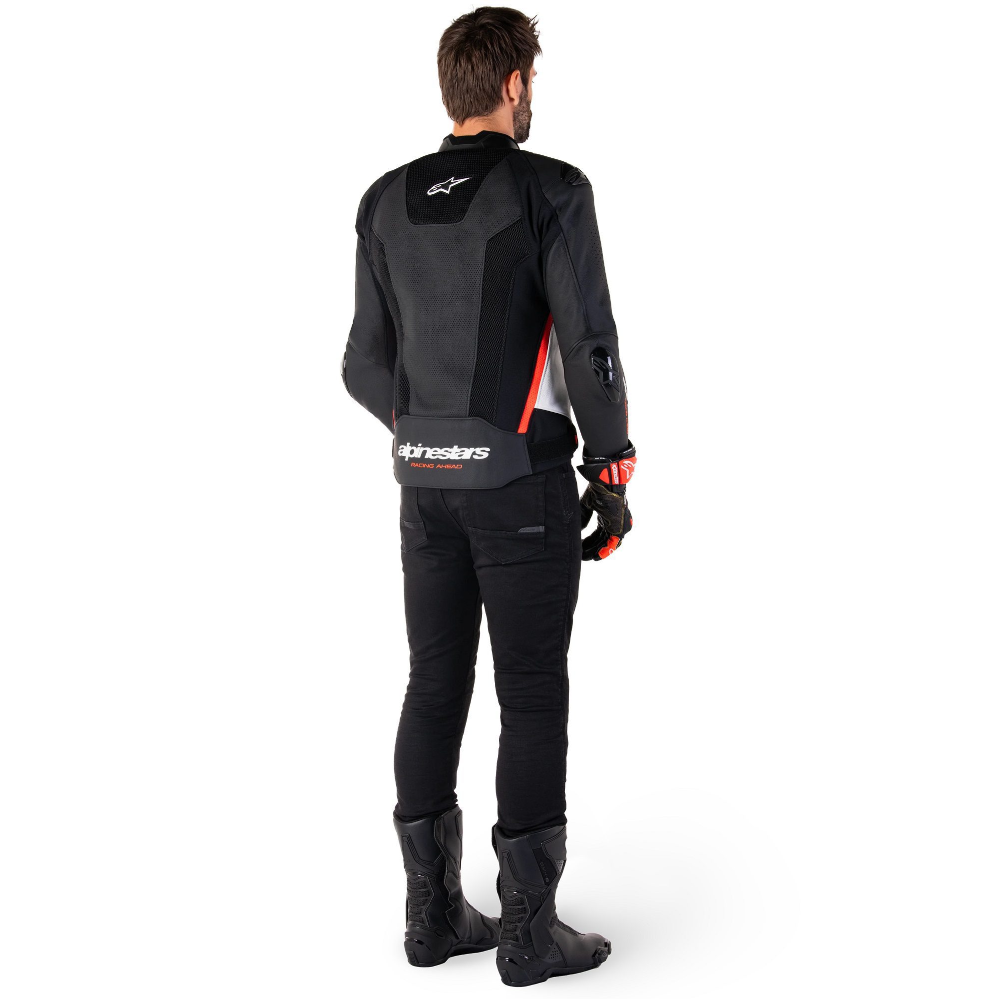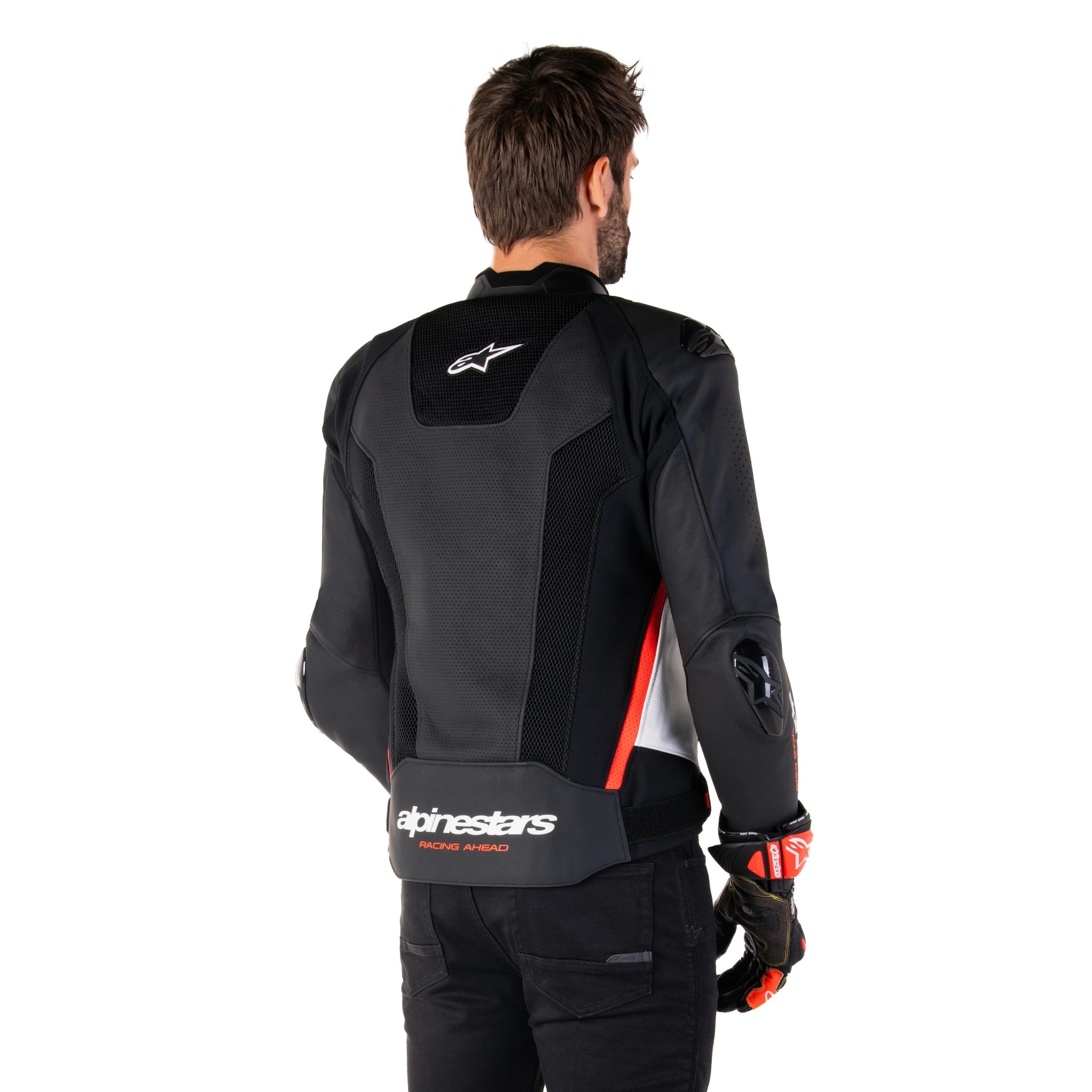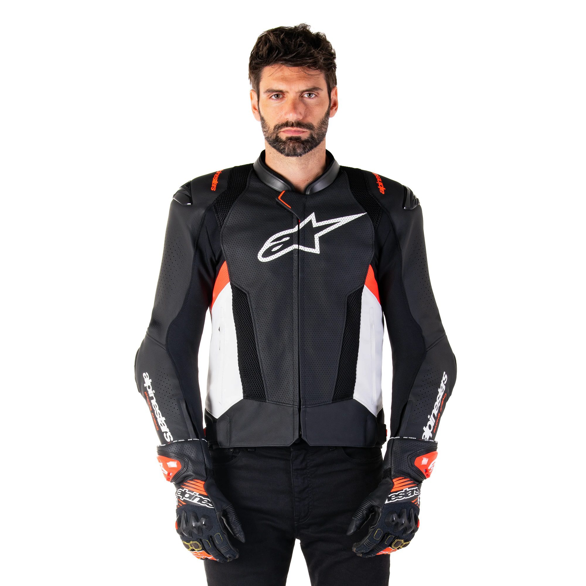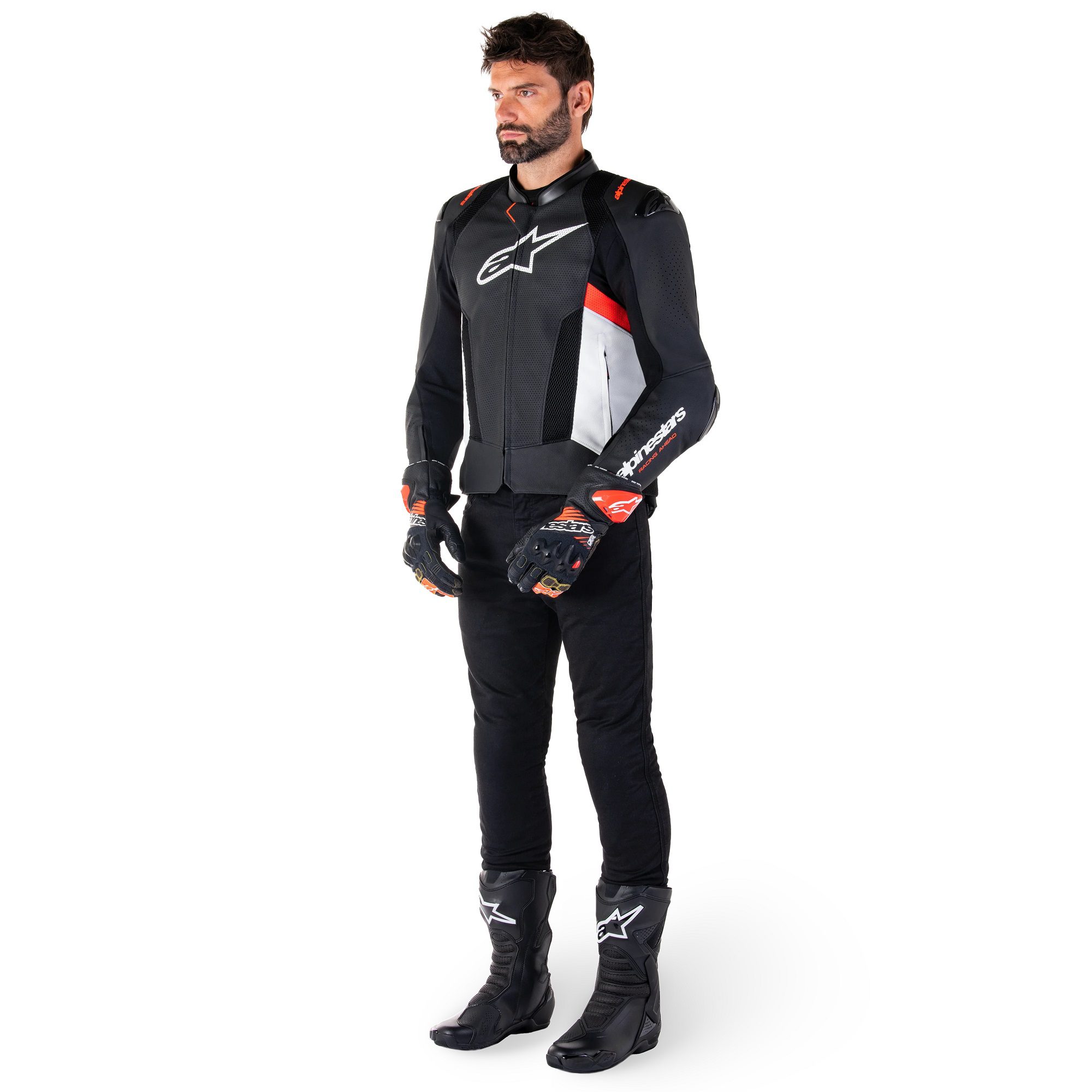 The Alpinestars Missile v3 Airflow leather motorcycle jacket is a premium racing sport jacket derived directly from the MotoGP itself. The leather riding jacket incorporates advanced levels of racing technology to deliver premium protection performance, comfort and airflow.