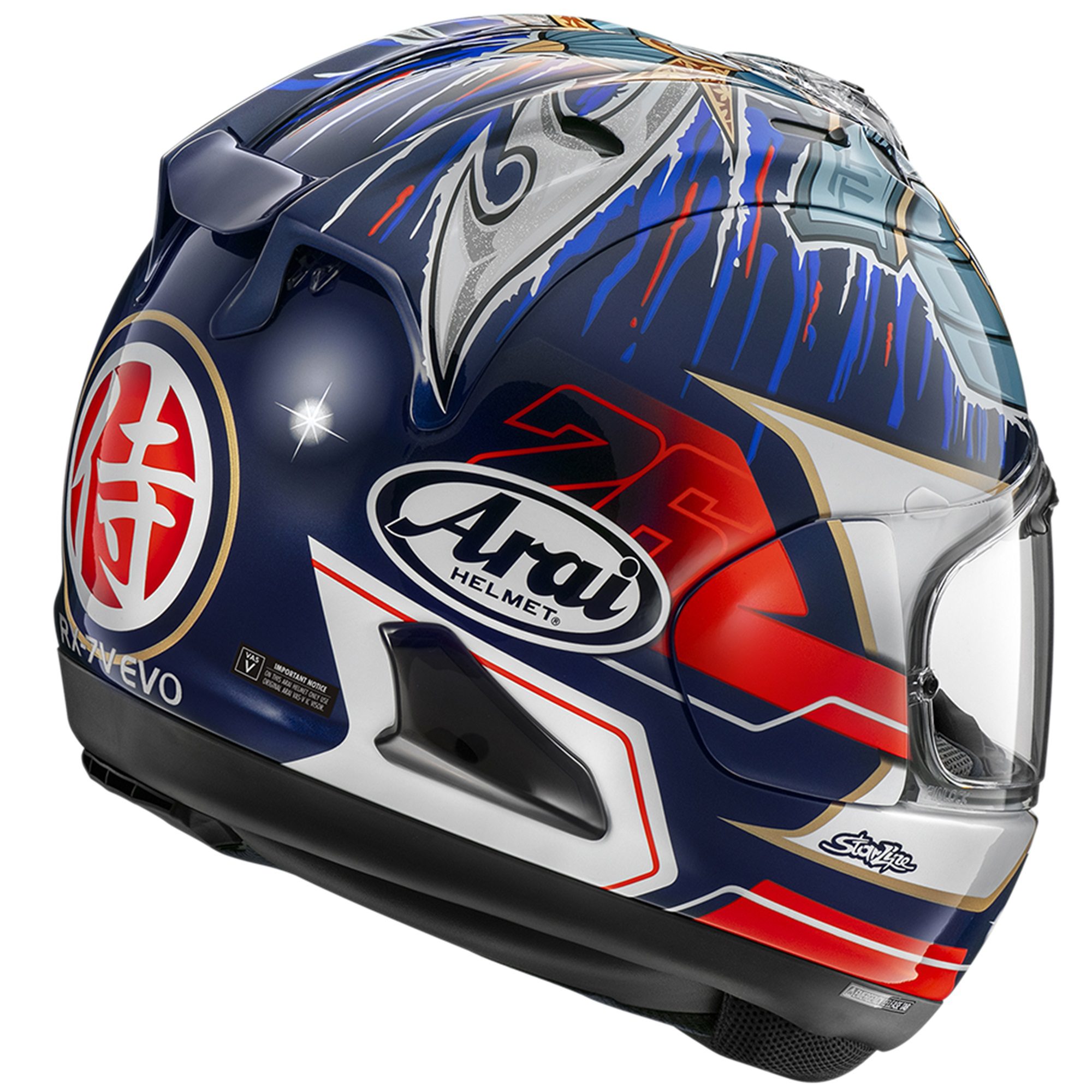 The Arai RX-7V Evo Pedrosa Shogun Replica Motorcycle Helmet has always been the benchmark for Arai’s motorcycle racing R&D at the very highest level in motorsport. Handmade in Japan by a three-generation family company of riders, it is Arai’s state-of-the-art motorcycle helmet. Packed with seven decades of experience & technology. The new flagship model with proven Arai protection combined with the ECE R22-06 approval. It’s not just a new model, it’s a new benchmark.