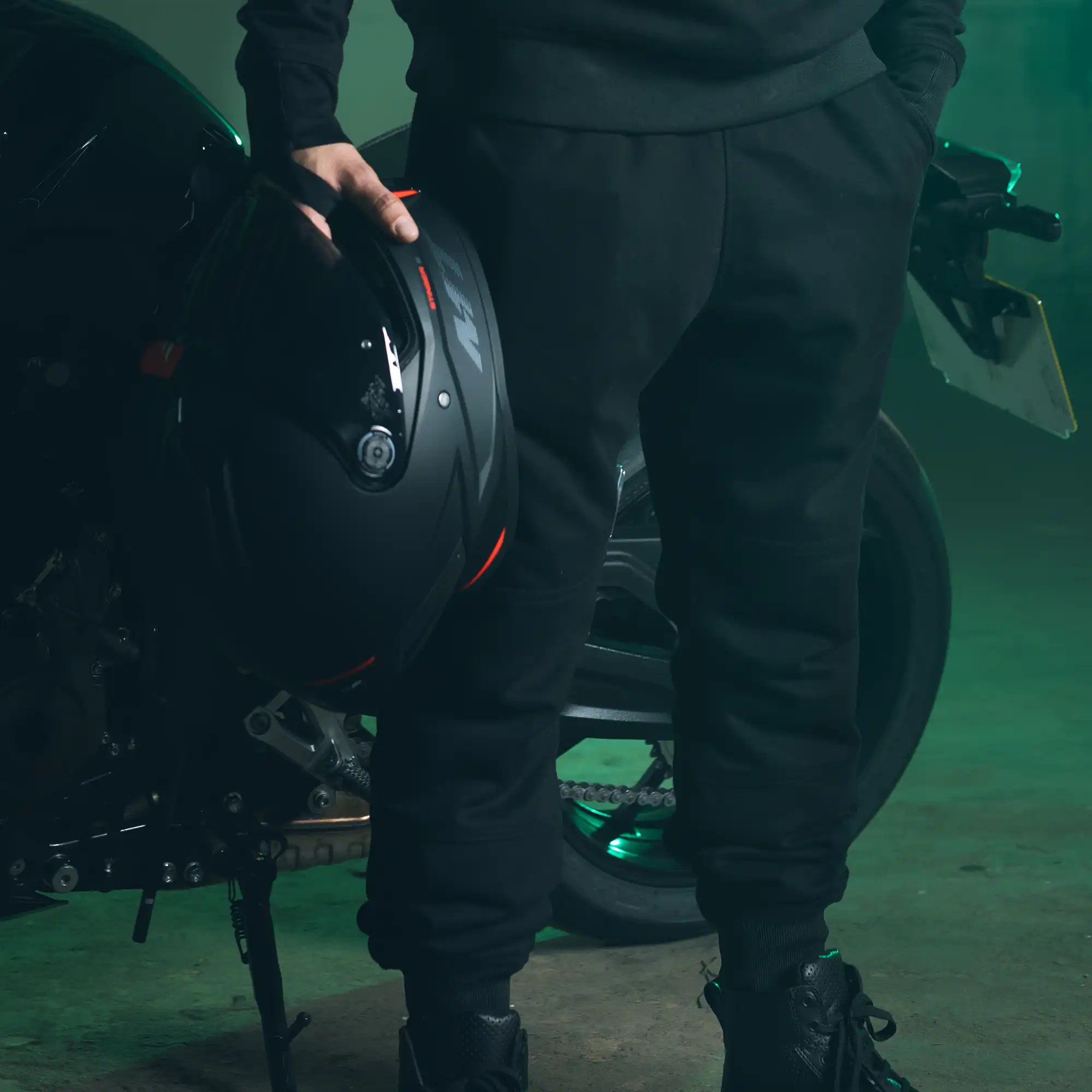 The ARMR Aki 1.0 motorcycle joggers are an excellent option for urban riding, meaning that you don’t need to take a spare set of trousers with you while riding. The motorbike joggers come with aramid reinforcements in key impact zones, as well as CE certified knee protectors. A hidden zippered pocket allows you to easily store your essentials, and a jacket zip connector allows you to easily connect to any ARMR riding jacket or hoodie.