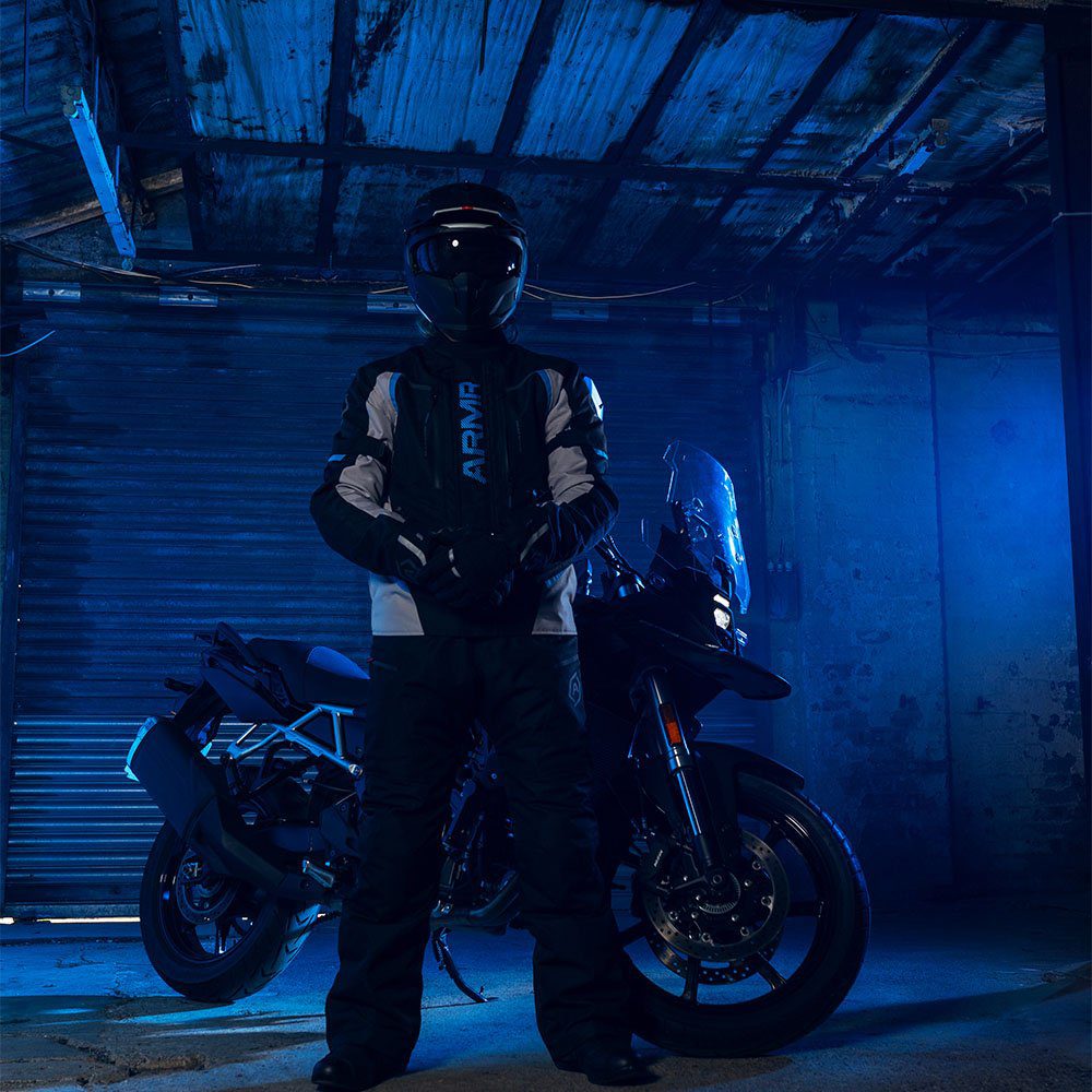 The ARMR motorbike jacket is also packed with safety features developed to keep you safe. You will find CE Level 1 protectors in the shoulders and elbows (back protector available separately), and when combined with reinforcements it results in a CE A rating for the waterproof touring motorbike jacket. Available in a range of colours to match any riders gear, bike and personal taste.