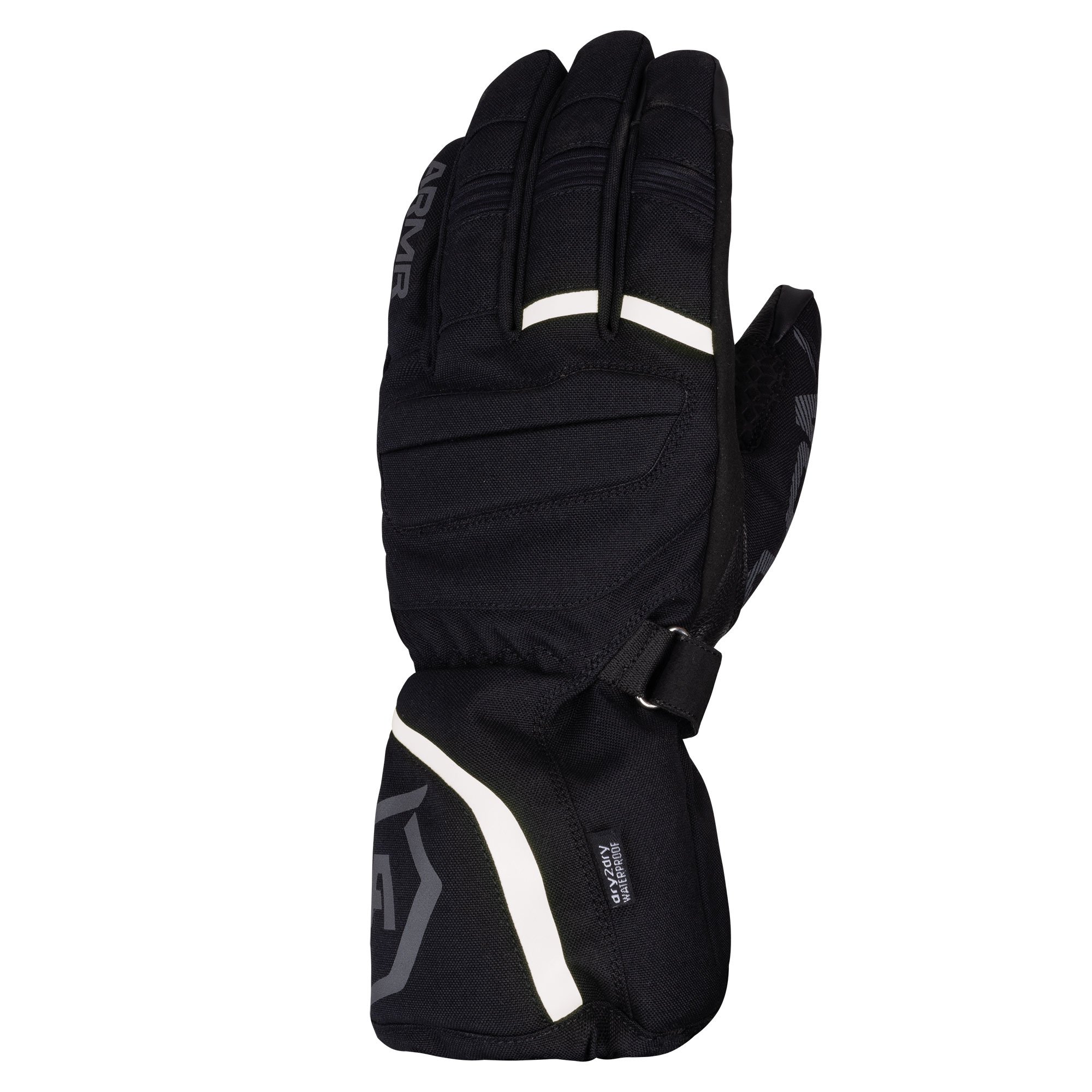 The ARMR Kiso 4.0 WP motorcycle gloves are ideal for riders looking to stay warm, dry and comfortable during harsh weather riding. The riding gloves feature a DRYGUARD waterproof membrane, 3M™ Thinsulate™ insulation and quick release cuff adjustment. The affordable yet protective waterproof gloves have been designed with full leather palm protection and with an Amara overlay for extra grip. The fully waterproof construction gives this glove an ideal blend of comfort and protection, perfect for all weather riding.