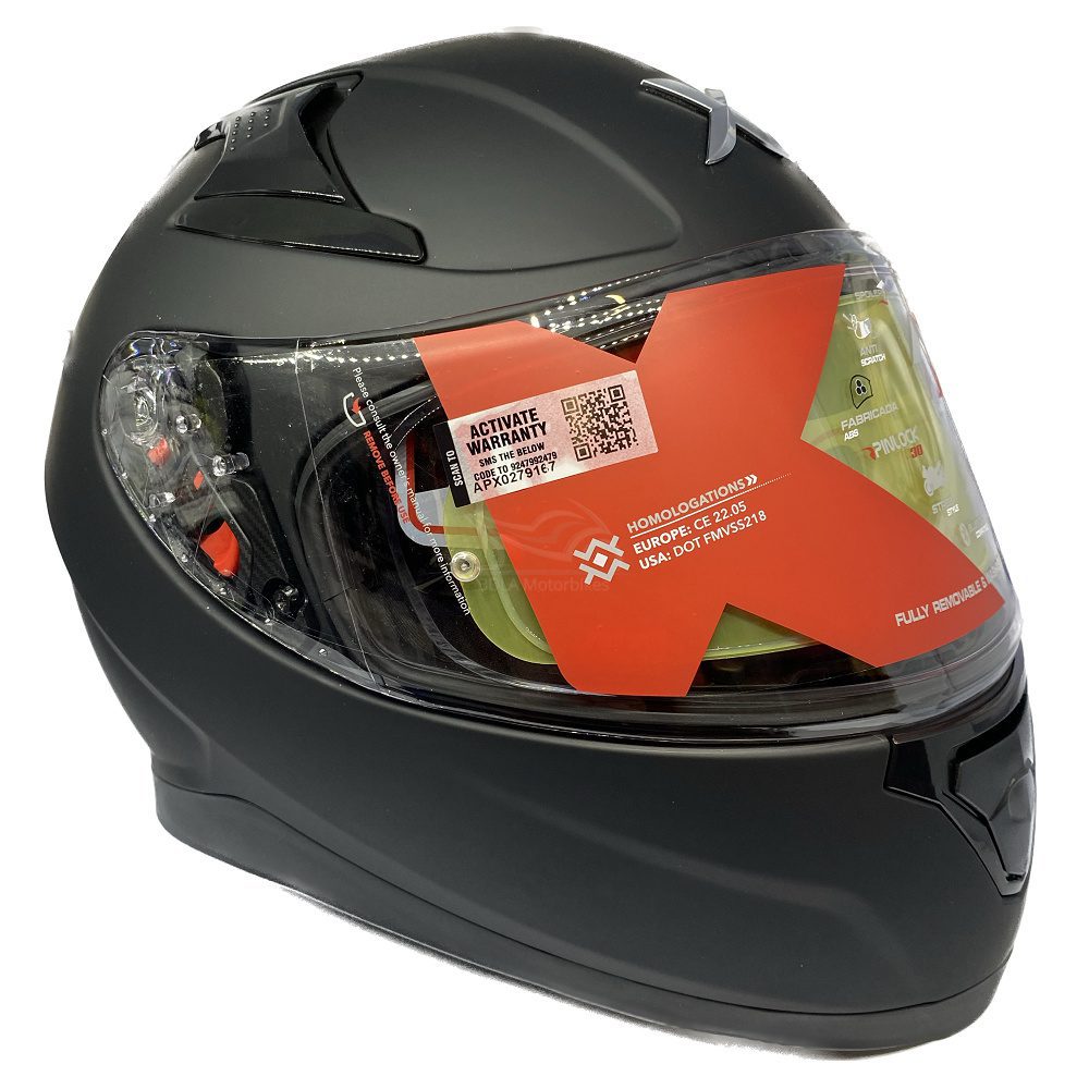 The Axor Apex plain motorcycle helmet is a great choice for new and beginner riders looking for great value from their riding life. The Axor full face motorcycle helmet is equipped as standard with many features usually reserved for the premium of the premium motorbike helmets, namely an anti-fog Pinlock ready visor with a factory installed Pinlock insert, as well as an integrated spoiler. Available in a range of colours to match any riders gear, bike and personal taste!