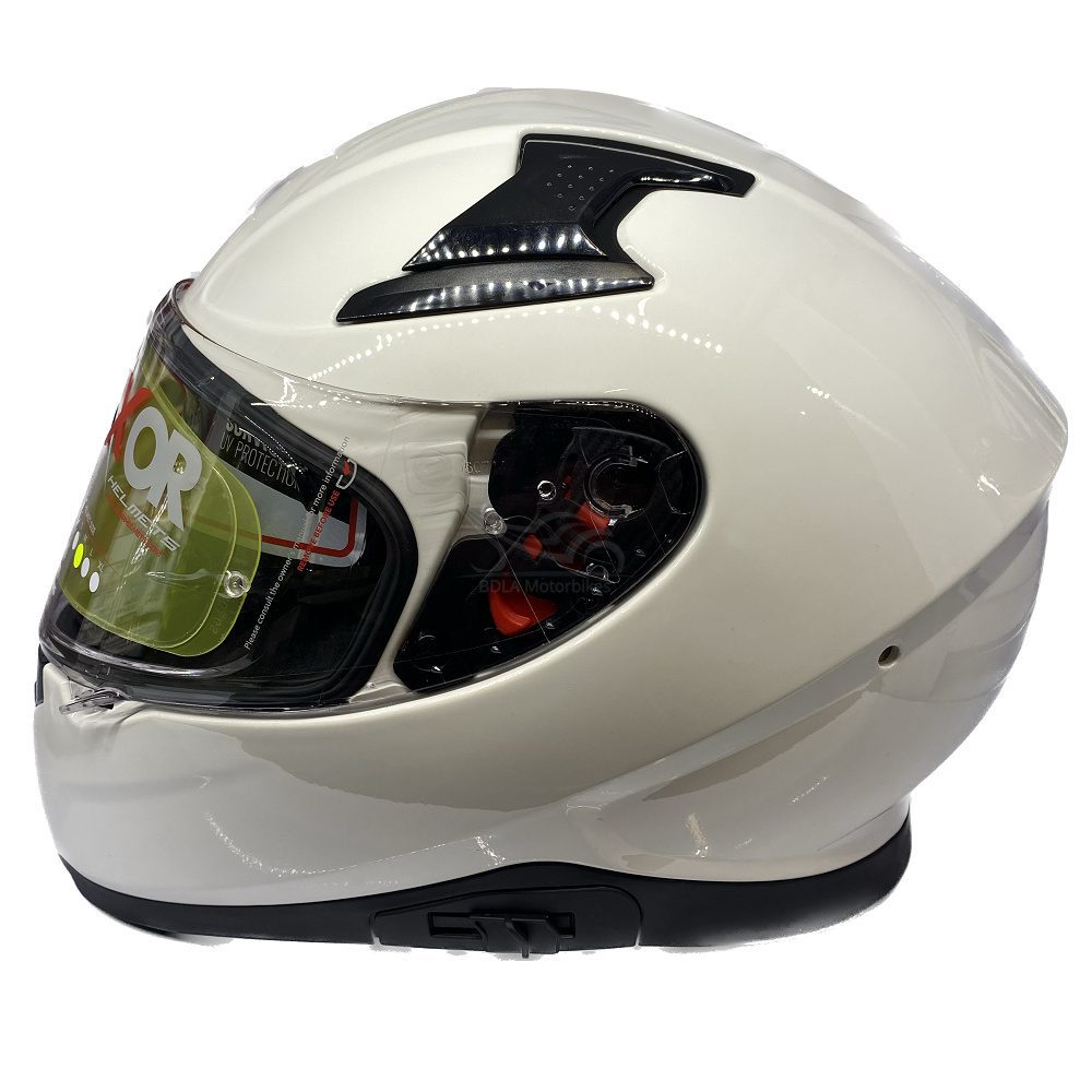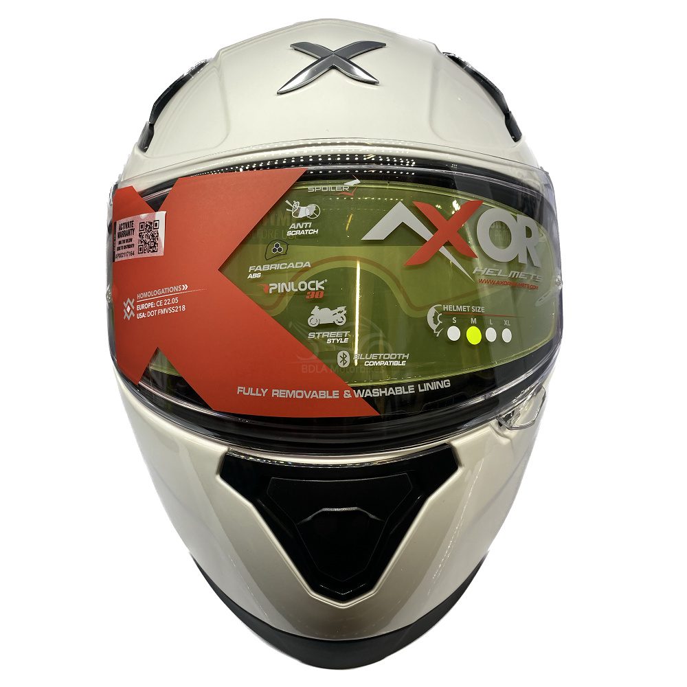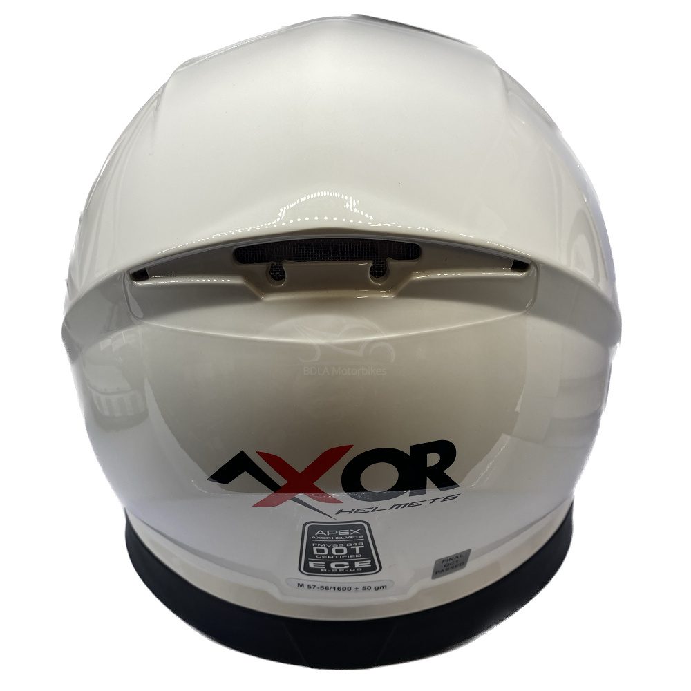 The Axor Apex plain motorcycle helmet is a great choice for new and beginner riders looking for great value from their riding life. The Axor full face motorcycle helmet is equipped as standard with many features usually reserved for the premium of the premium motorbike helmets, namely an anti-fog Pinlock ready visor with a factory installed Pinlock insert, as well as an integrated spoiler. Available in a range of colours to match any riders gear, bike and personal taste!