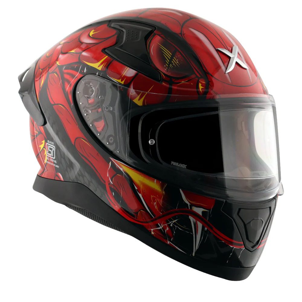 The Axor Apex Venomous motorcycle helmet is a great choice for new and beginner riders looking for great value from their riding life. The Axor full face motorcycle helmet is equipped as standard with many features usually reserved for the premium of the premium motorbike helmets, namely an anti-fog Pinlock ready visor with a factory installed Pinlock insert, as well as an integrated spoiler. Available in a range of colours to match any riders gear, bike and personal taste!