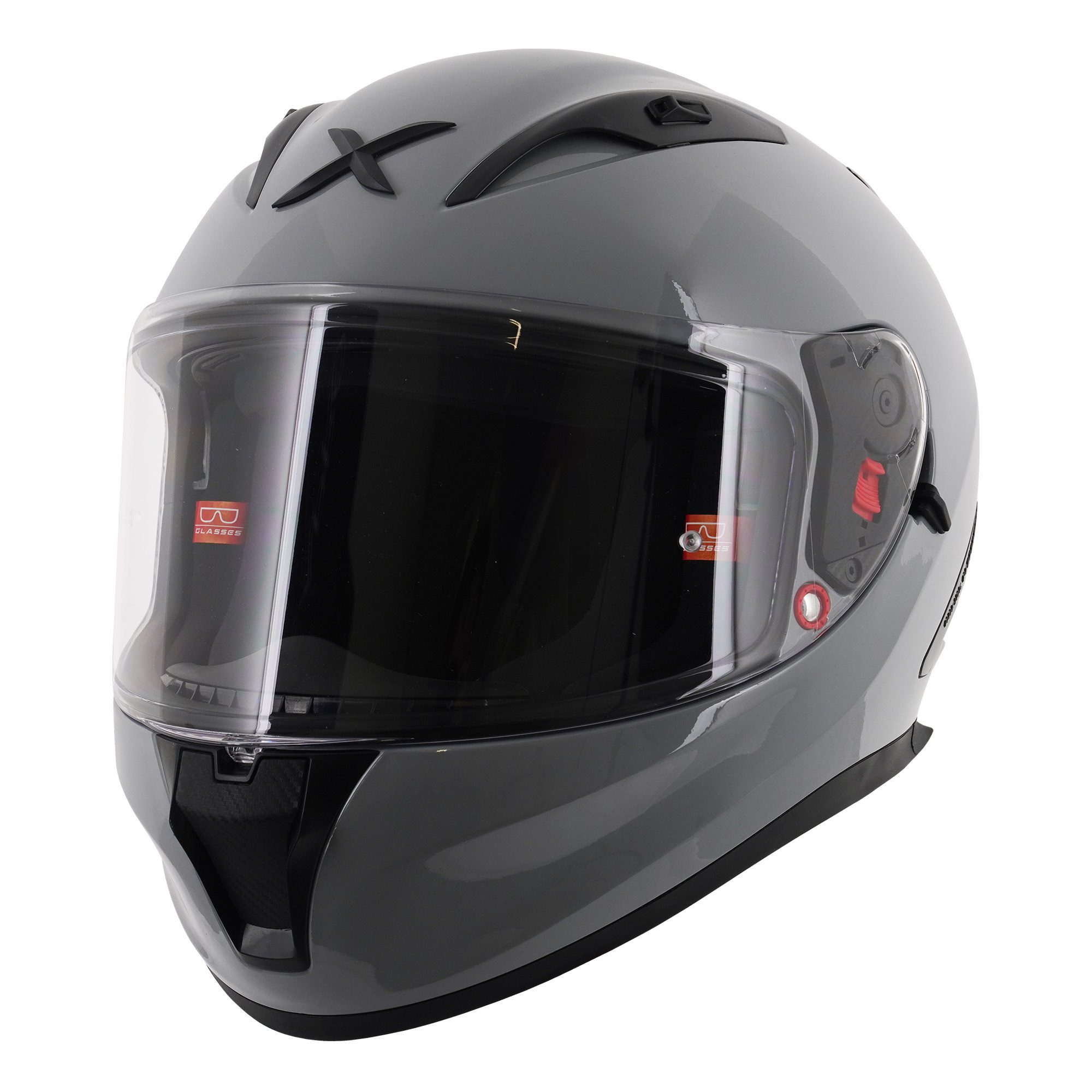 The Axor Street plain motorcycle helmet is a great choice for new and beginner riders looking for great value from their riding life. The Axor full face motorcycle helmet is equipped as standard with many features usually reserved for the premium of the premium motorbike helmets. Namely an anti-fog Pinlock ready visor with a factory installed Pinlock insert, as well as an integrated spoiler. Available in a range of colours to match any riders gear, bike and personal taste!