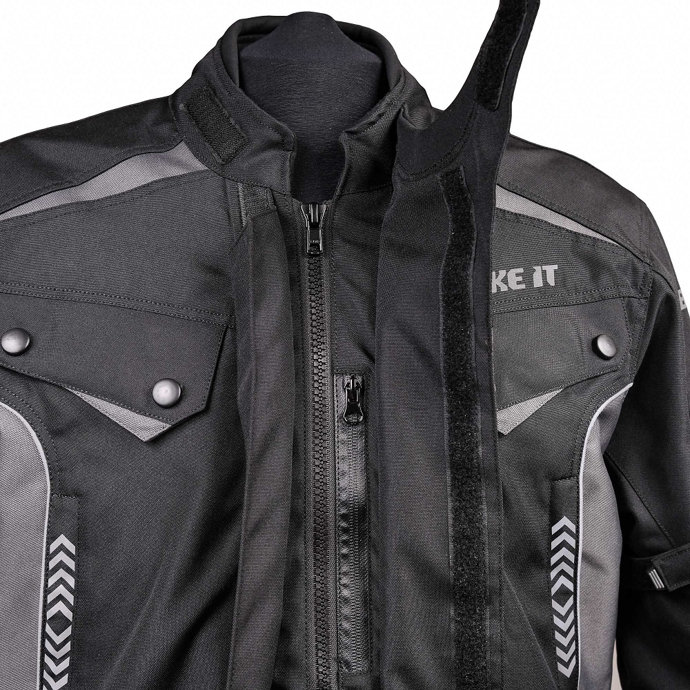 The riding jacket has been constructed from BikerTex, Bike Its very own specially crafted material. The result is maximum strength, stretch and durability throughout the jacket. Additional layers of material in high abrasion areas such as the shoulders and arms offer enhanced protection throughout. Climatech waterproof technology provides a waterproof and breathable jacket which keeps you dry even during a downpour. A removable thermal lining offers sublime temperature comfort, whatever the season. Adjustable vents on the chest and back keep you ventilated and allow air to flow out of the back of the coat.