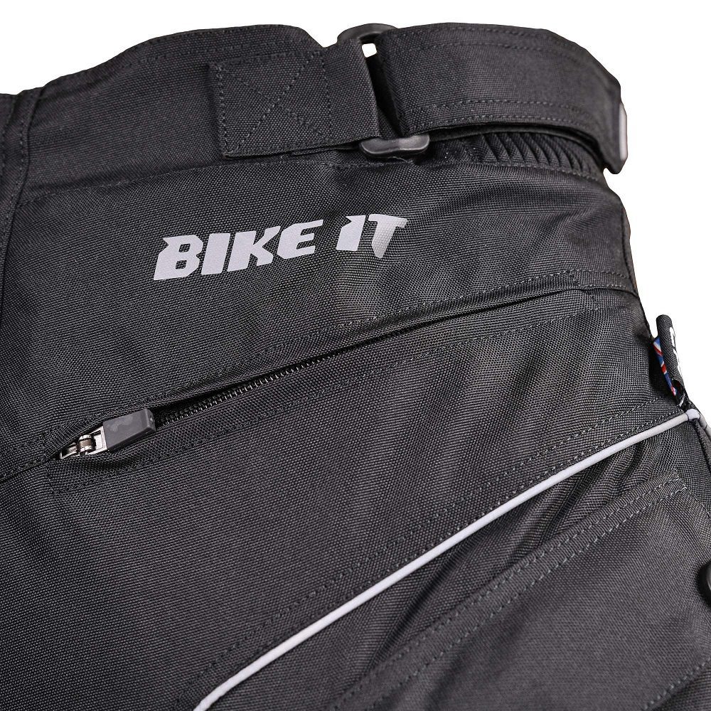 It doesn’t stop there however, multiple pockets allow you to effortlessly store all of your essentials within easy reach. Stretch panels at the side and rear alongside an adjustable waist deliver a superb fit no matter your riding position. To top it all off, the trousers come with a connector zip enabling you too connect any compatible Bike It riding jackets.