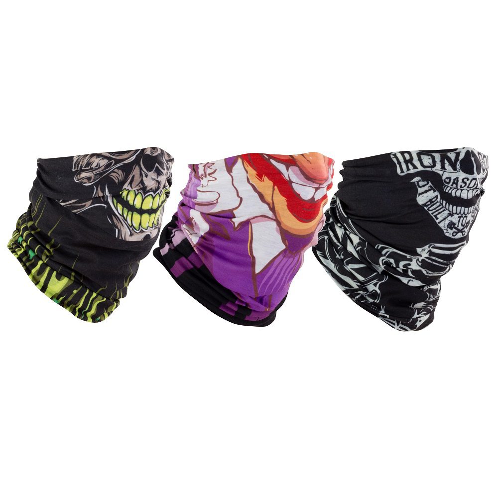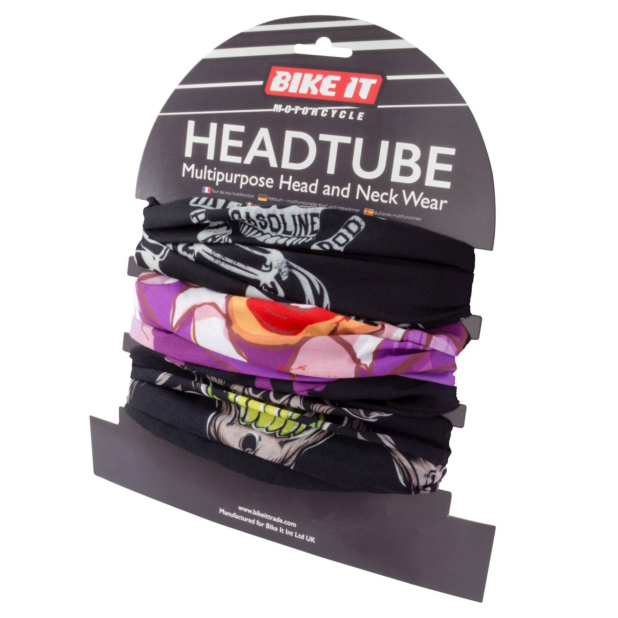 The Bike It Faces motorcycle head tube pack is a multi functional head and neck wear set that can be worn as a balaclava, bandanna, neckerchief, beanie or neck tube. With three different designs alongside their versatility to be worn in a variety of ways you’ll never be left wanting!