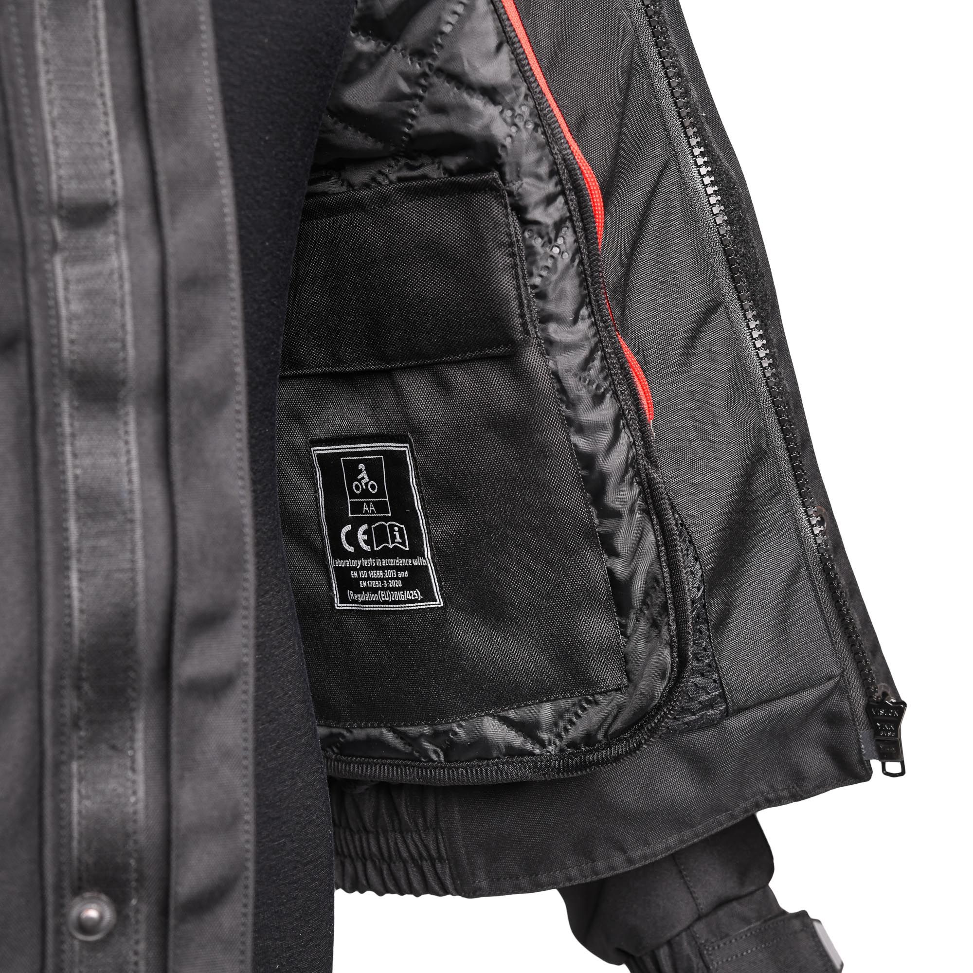 An elasticated waist as well as adjustable cuffs and arms deliver a snug fit in all riding positions. A huge amount of storage for your essentials is available with a number of both external and internal zipped pockets. CE protectors can be found in the shoulder and elbow areas of the textile motorcycle jacket, whilst reflective detailing also ensures that you’re seen in poor visibility, and especially at night.