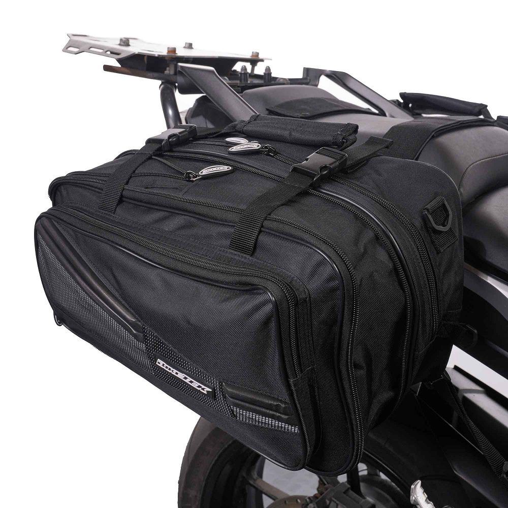 BikeTek Diablo motorcycle panniers are perfect for tourers and daily riders looking to carry their luggage with them. The compact contoured panniers expand from 10 litres up to 21 litres, giving a maximum capacity of 42 litres for the set. A set of rain covers are provided, which helps to protect against harsh conditions if you’re caught out or have to travel in poor weather.
