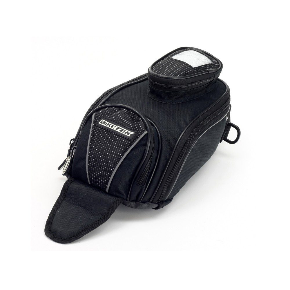 The BikeTek magnetic motorcycle tank bag uses a stylish contoured design to offer a 7 litre capacity for riders looking to take their essentials and smaller items with them on their journeys.