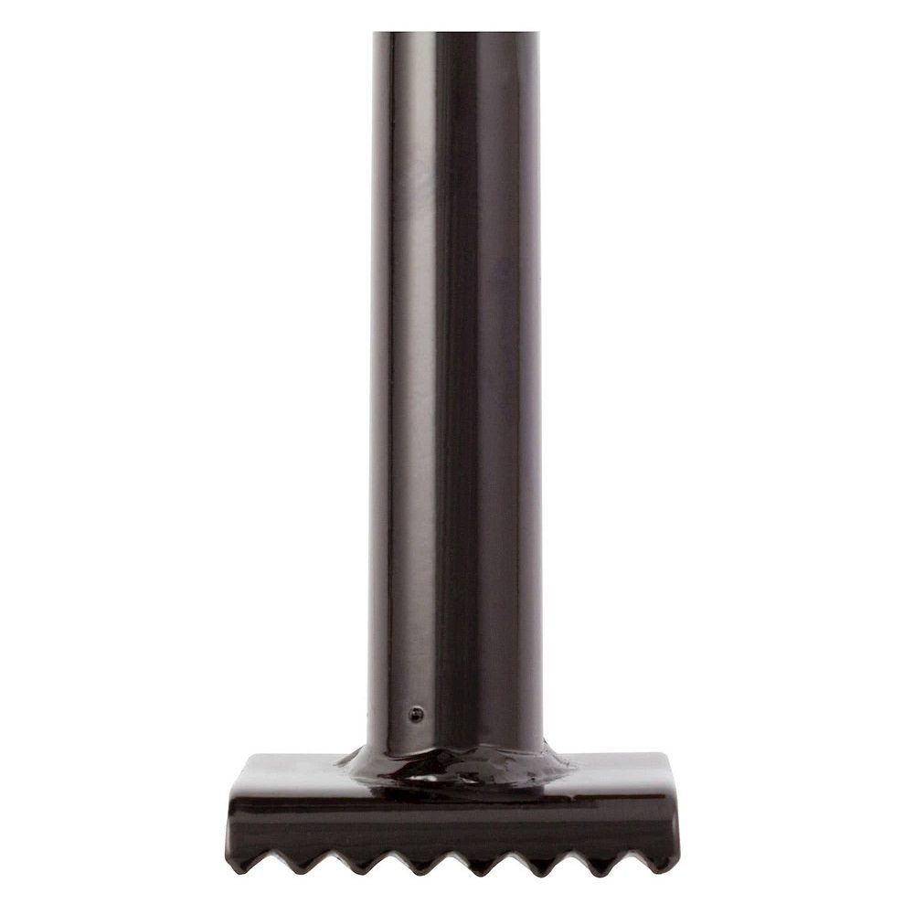 Serrated footplate for ground stability and grip.