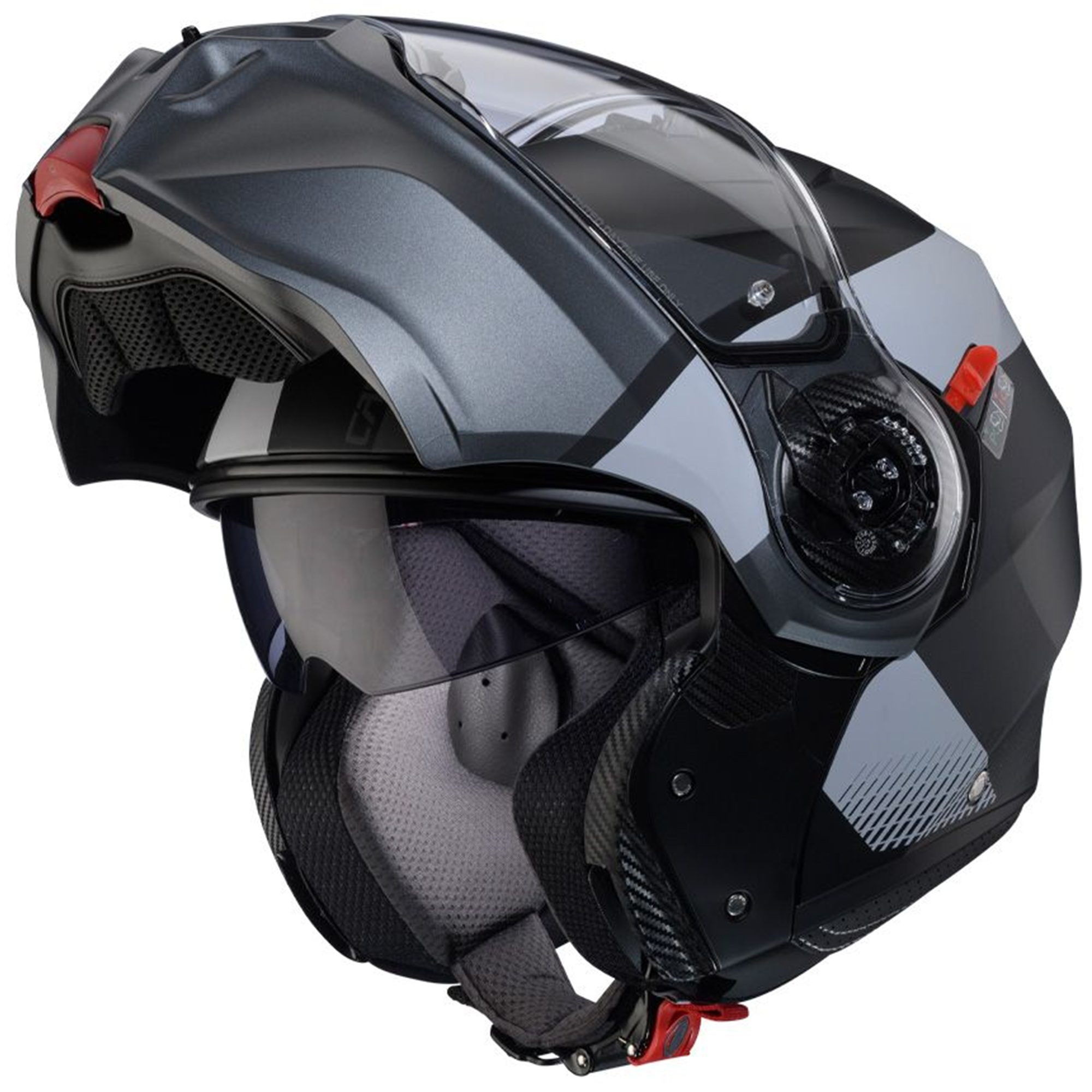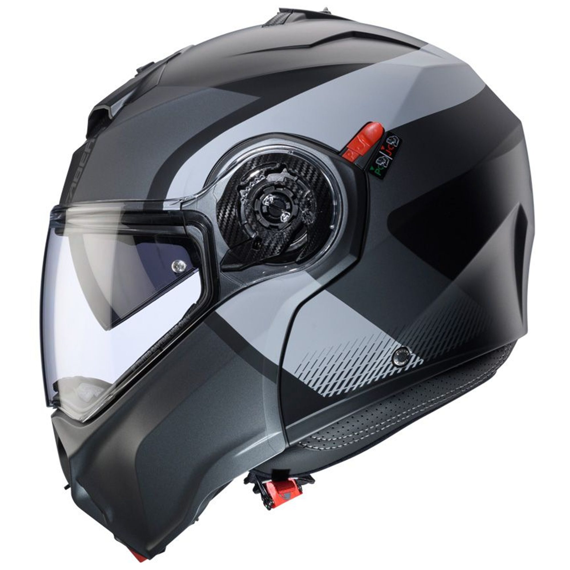 The Caberg Duke Evo Indy flip up motorcycle helmet is a superb choice for riders looking to tackle the road in safety and comfort. Innovative technical solutions and a captivating look ensure that your ride is pleasurable everyday of the year, no matter the weather. With a Pinlock ready visor and visor insert, you can actively battle misting of your visor and keep maximum vision & clarity at all times. Available in a range of colours to match any riders gear, bike and personal taste!
