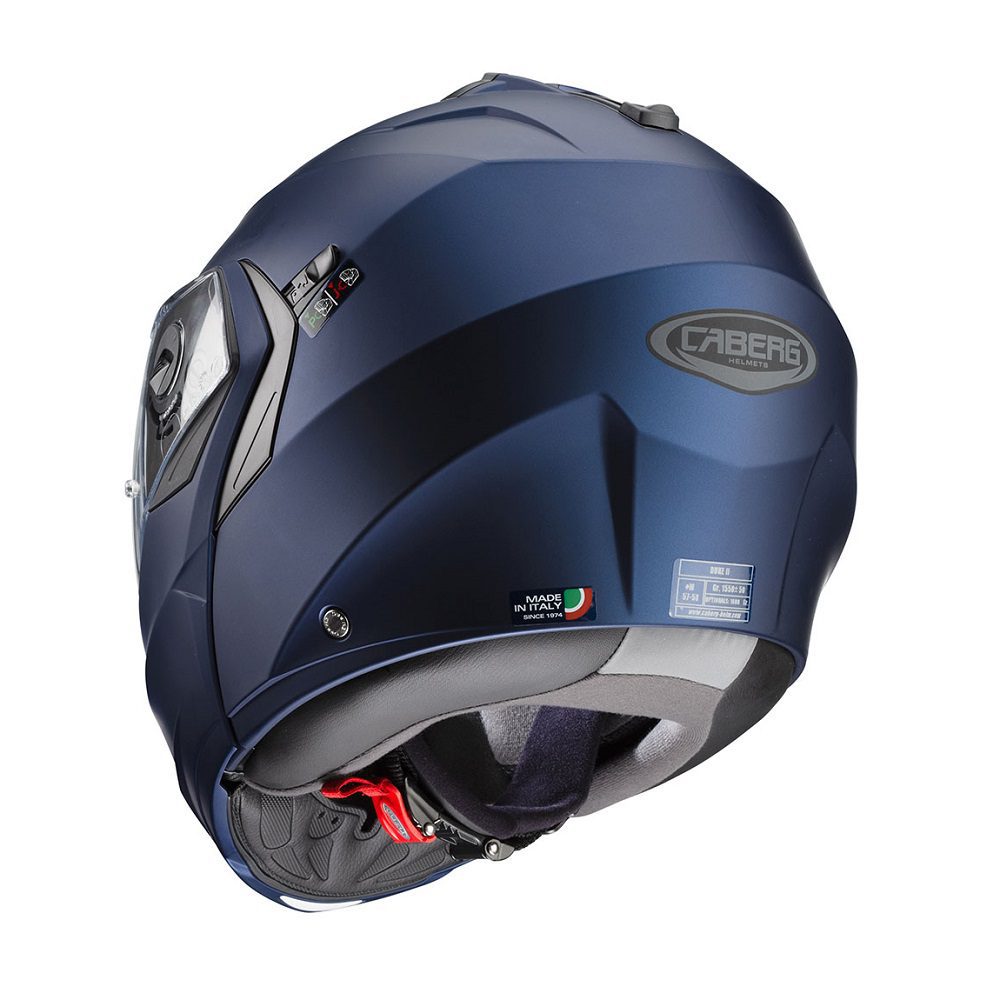 The Caberg Duke X Plain flip up motorcycle helmet is a superb choice for riders looking to tackle the road in safety and comfort. Innovative technical solutions and a captivating look ensure that your ride is pleasurable everyday of the year, no matter the weather.