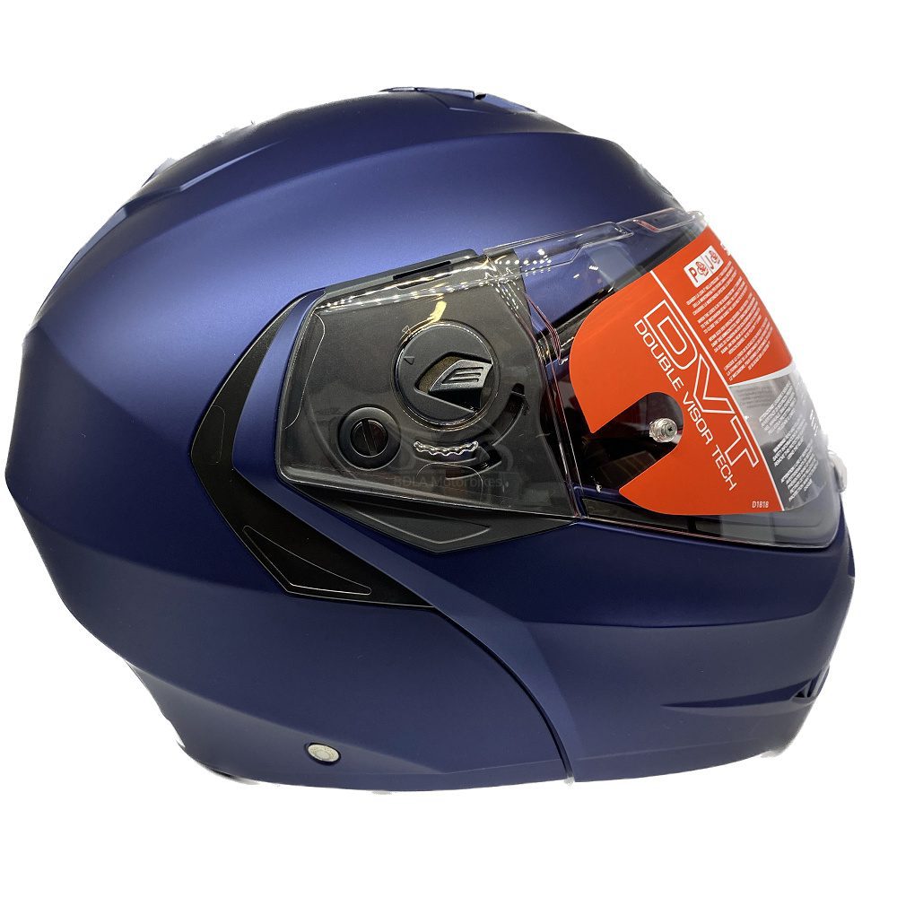 Double visor system (clear outer, smoke inner).