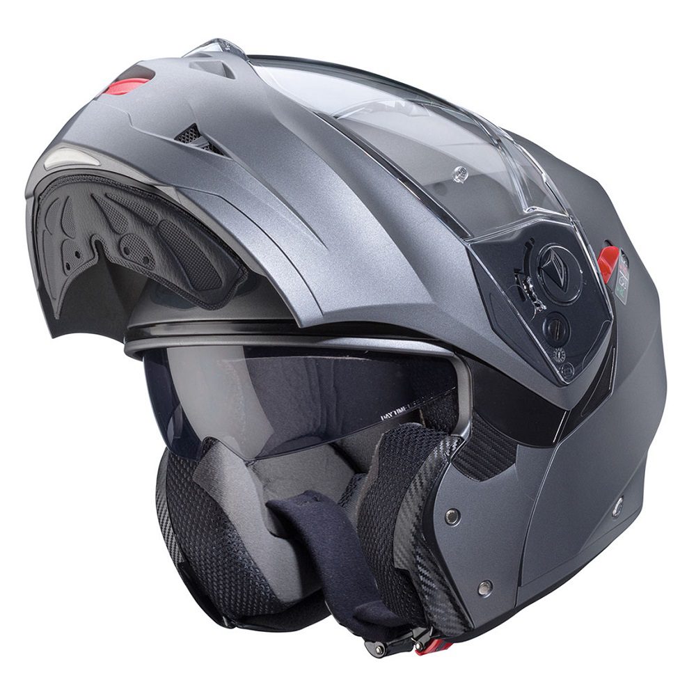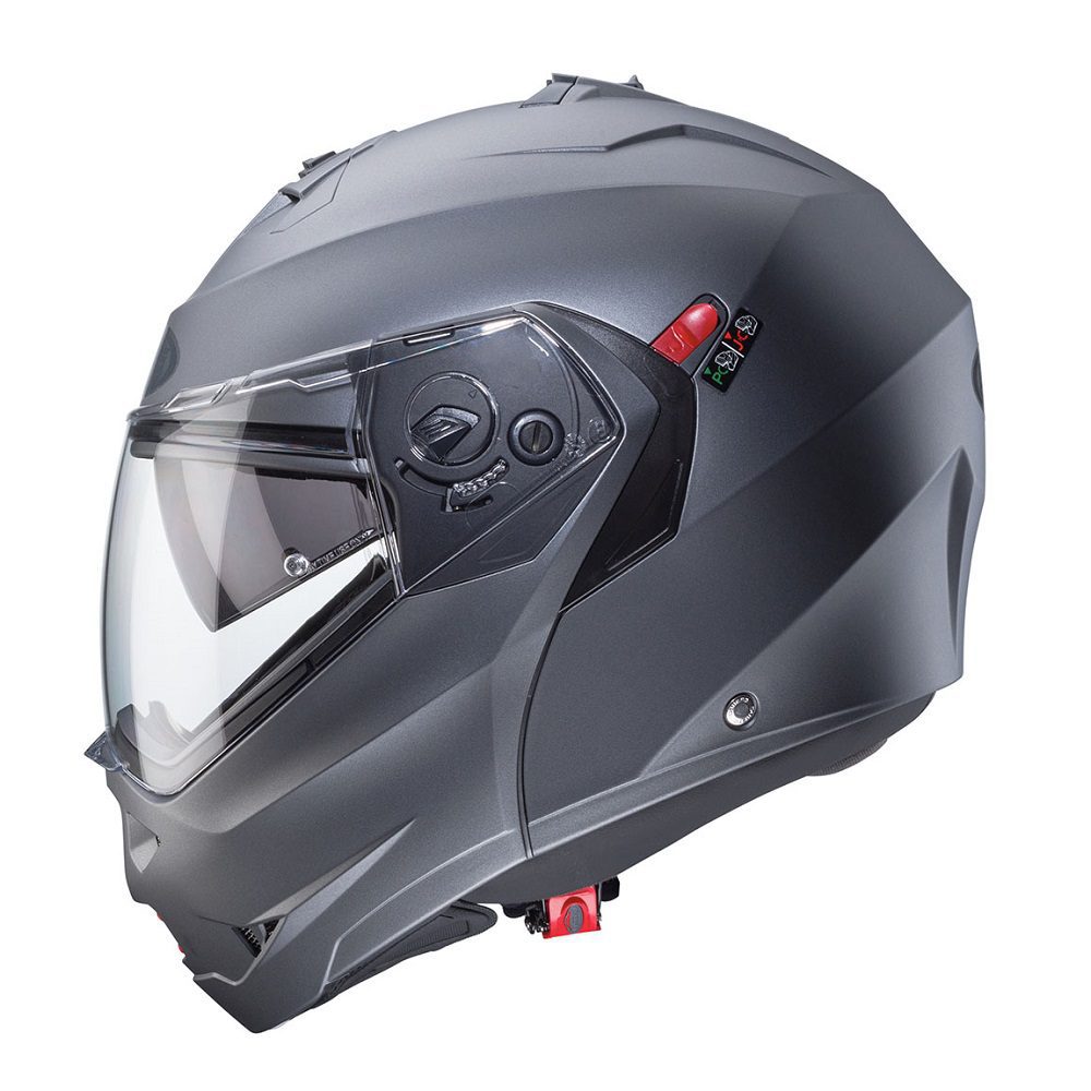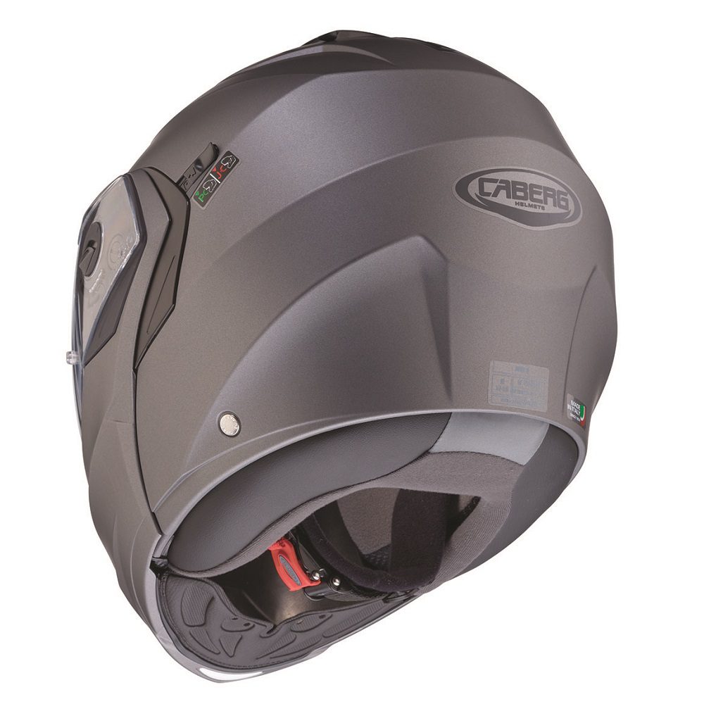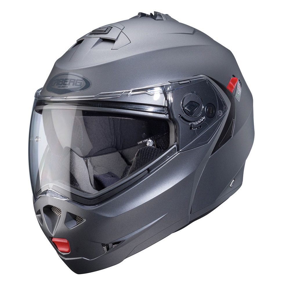 The Caberg Duke X Plain flip up motorcycle helmet is a superb choice for riders looking to tackle the road in safety and comfort. Innovative technical solutions and a captivating look ensure that your ride is pleasurable everyday of the year, no matter the weather.
