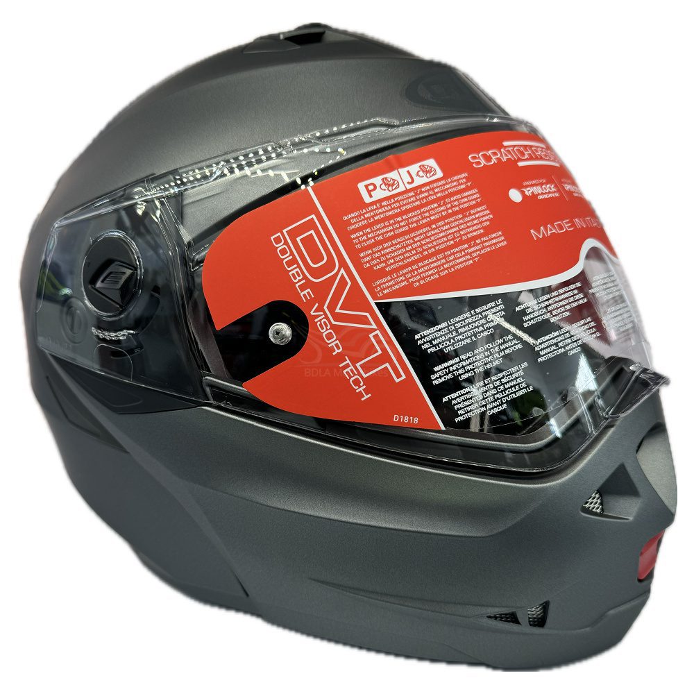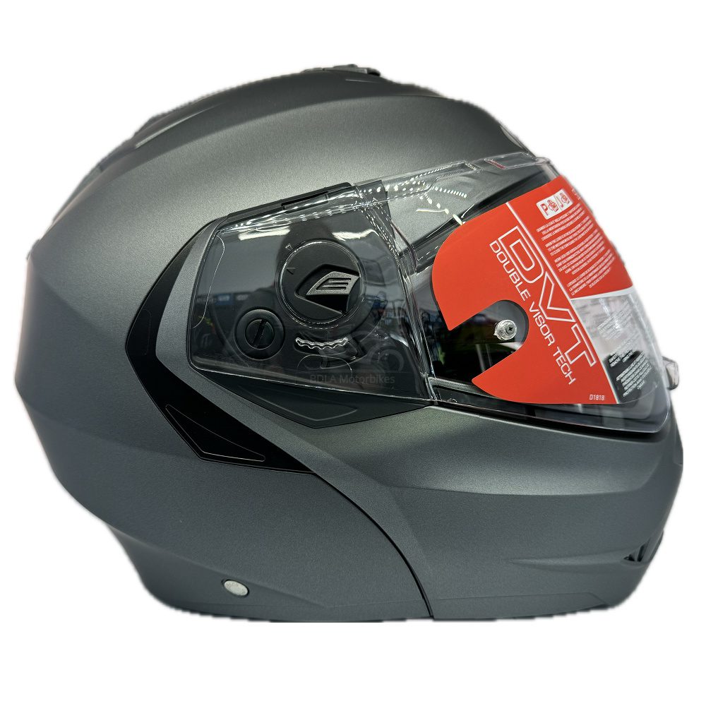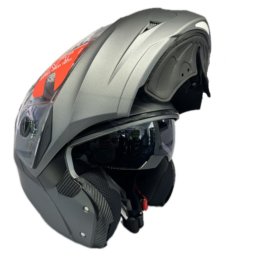 Double visor system (clear outer, smoke inner).