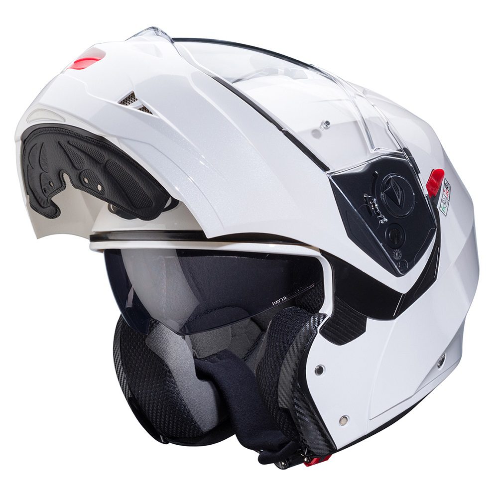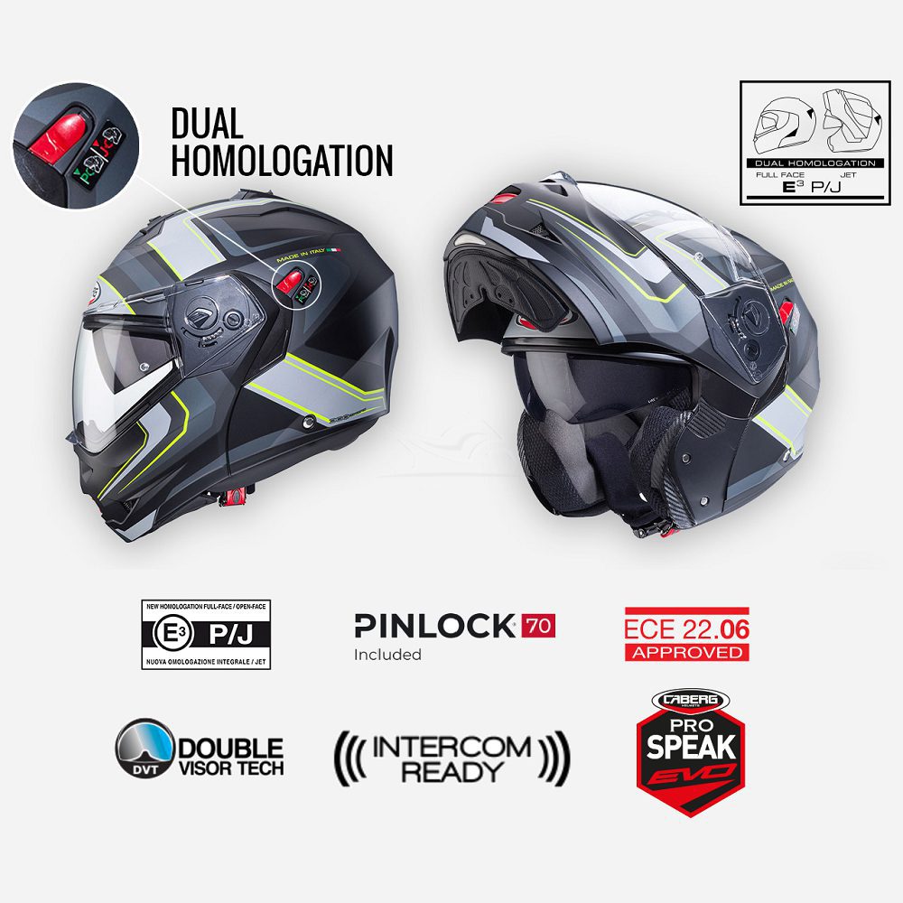The Caberg Duke X Plain flip up motorcycle helmet is a superb choice for riders looking to tackle the road in safety and comfort. Innovative technical solutions and a captivating look ensure that your ride is pleasurable everyday of the year, no matter the weather.