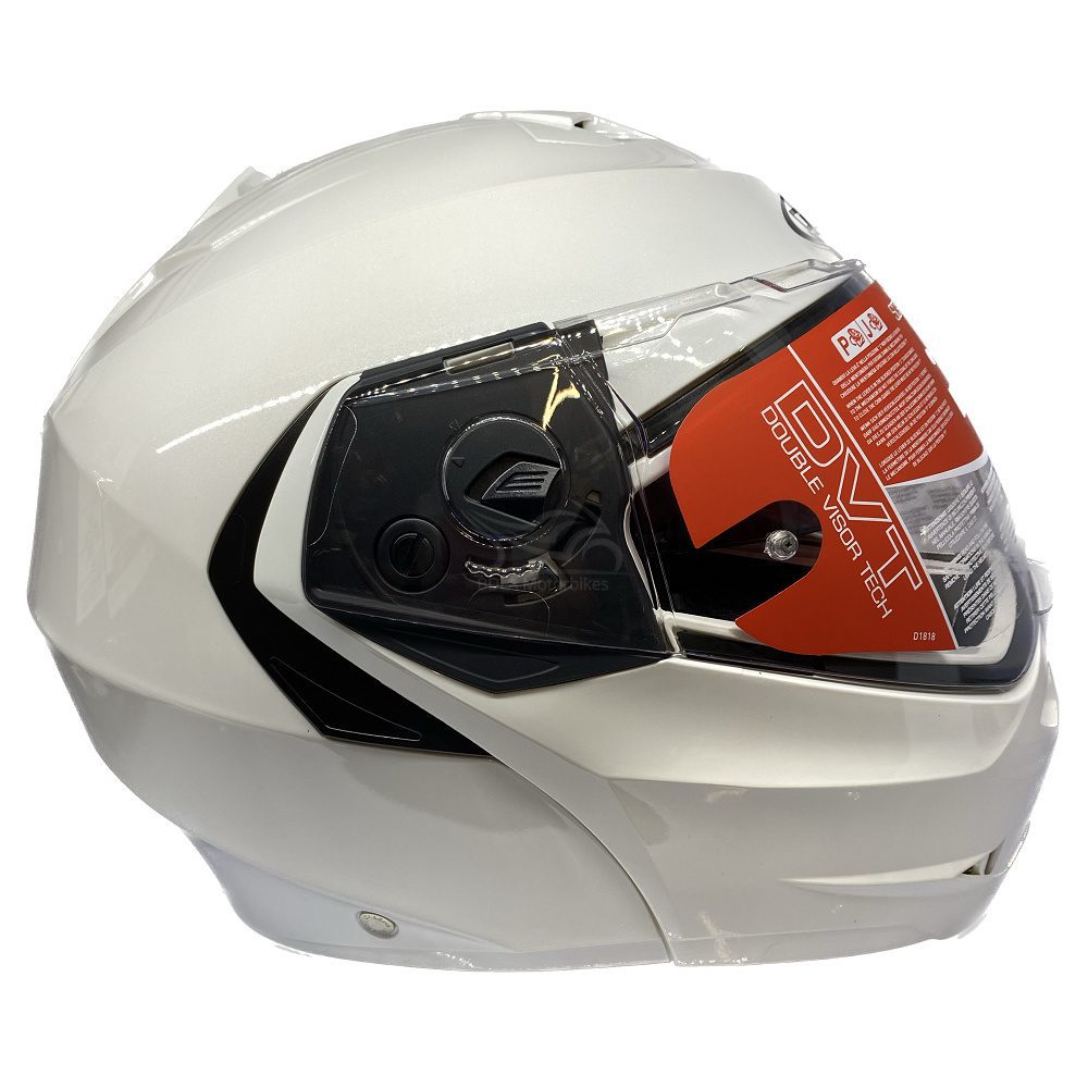 The Caberg Duke X plain flip up motorcycle helmet is a superb choice for riders looking to tackle the road in safety and comfort. Innovative technical solutions and a captivating look ensure that your ride is pleasurable everyday of the year, no matter the weather. A dual visor system allows you to battle sun glare with a drop down inner sun visor, while the outer visor is Pinlock prepared. Available in a range of colours to match any riders gear, bike and personal taste!