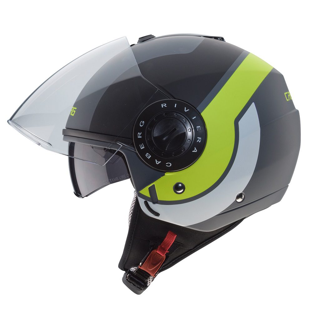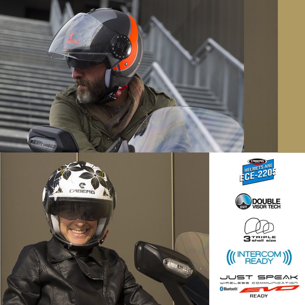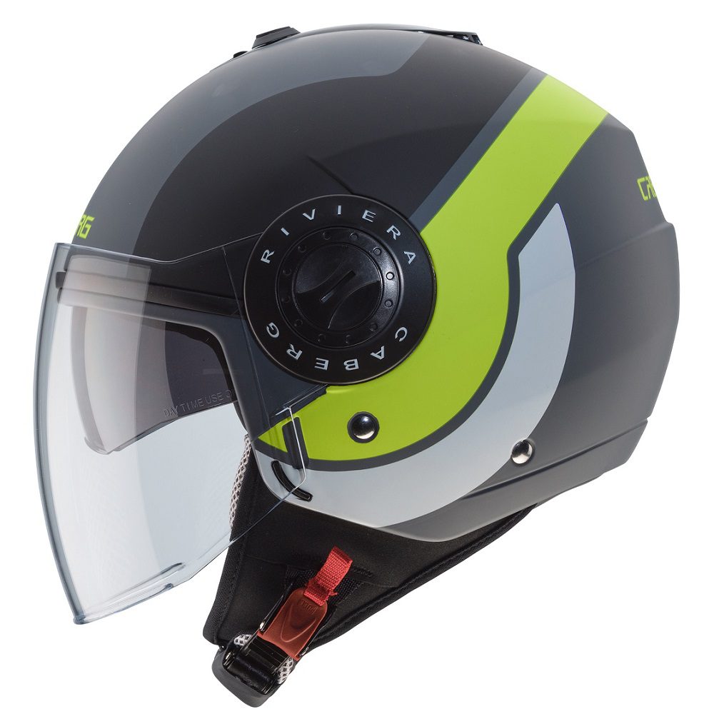The Caberg Riviera v3 Sway motorcycle helmet is perfect for city and touring riders looking to take to the road in style. With a double visor system, you have plenty of versatility with the jet helmet which performs ride after ride. Can be equipped with most 3rd party bluetooth systems, including the Caberg Just Speak Evo communication kit. Available in a range of colours to match any riders gear, bike and personal taste!