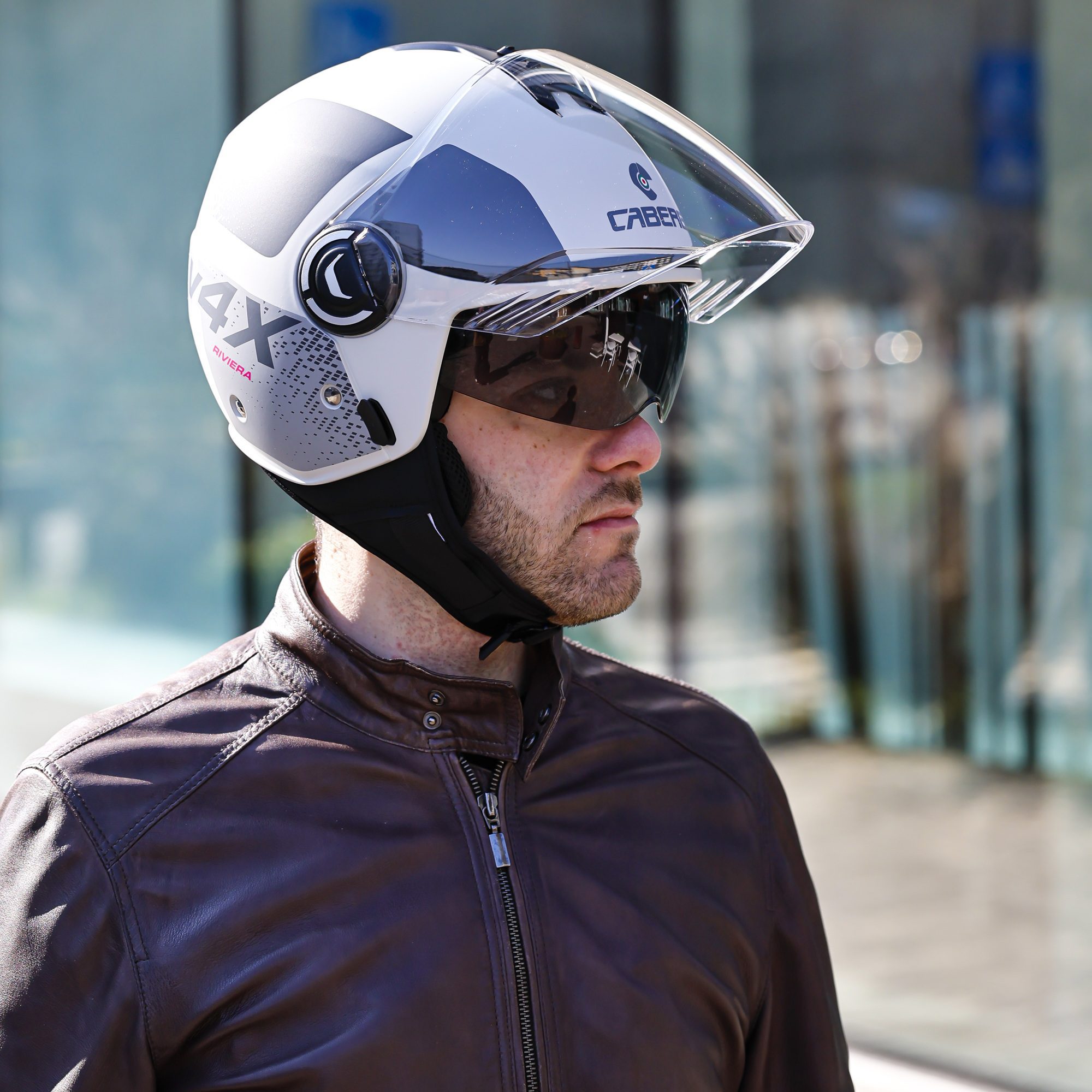 The Caberg Riviera v4 X open face motorcycle helmet is perfect for city and touring riders looking to take to the road in style. With a double visor system, you have plenty of versatility with the jet scooter helmet which performs ride after ride.