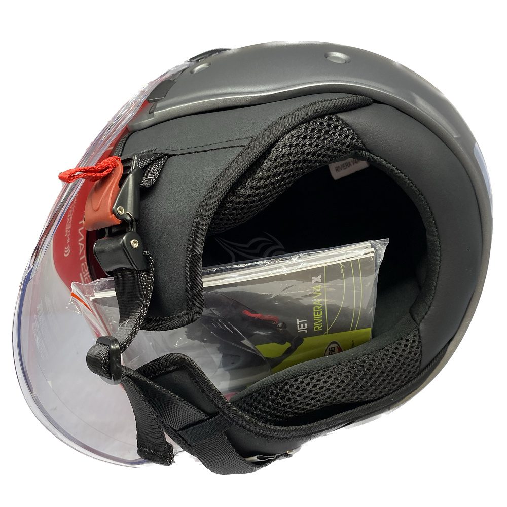 The Caberg Riviera v4 X plain open face motorcycle helmet is perfect for city and touring riders looking to take to the road in style. With a double visor system, you have plenty of versatility with the jet scooter helmet which performs ride after ride. Two outer shell sizes offers an excellent fitting proportion between the shell volume and riders head, delivering a comfortable fit every time. Can be equipped with most 3rd party Bluetooth systems, including the Caberg Pro Speak Evo communication kit. Available in a range of colours to match any riders gear, bike and personal taste!