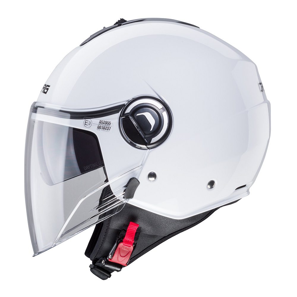 The Caberg Riviera v4 X plain open face motorcycle helmet is perfect for city and touring riders looking to take to the road in style. With a double visor system, you have plenty of versatility with the jet scooter helmet which performs ride after ride. Two outer shell sizes offers an excellent fitting proportion between the shell volume and riders head, delivering a comfortable fit every time. Can be equipped with most 3rd party Bluetooth systems, including the Caberg Pro Speak Evo communication kit. Available in a range of colours to match any riders gear, bike and personal taste!