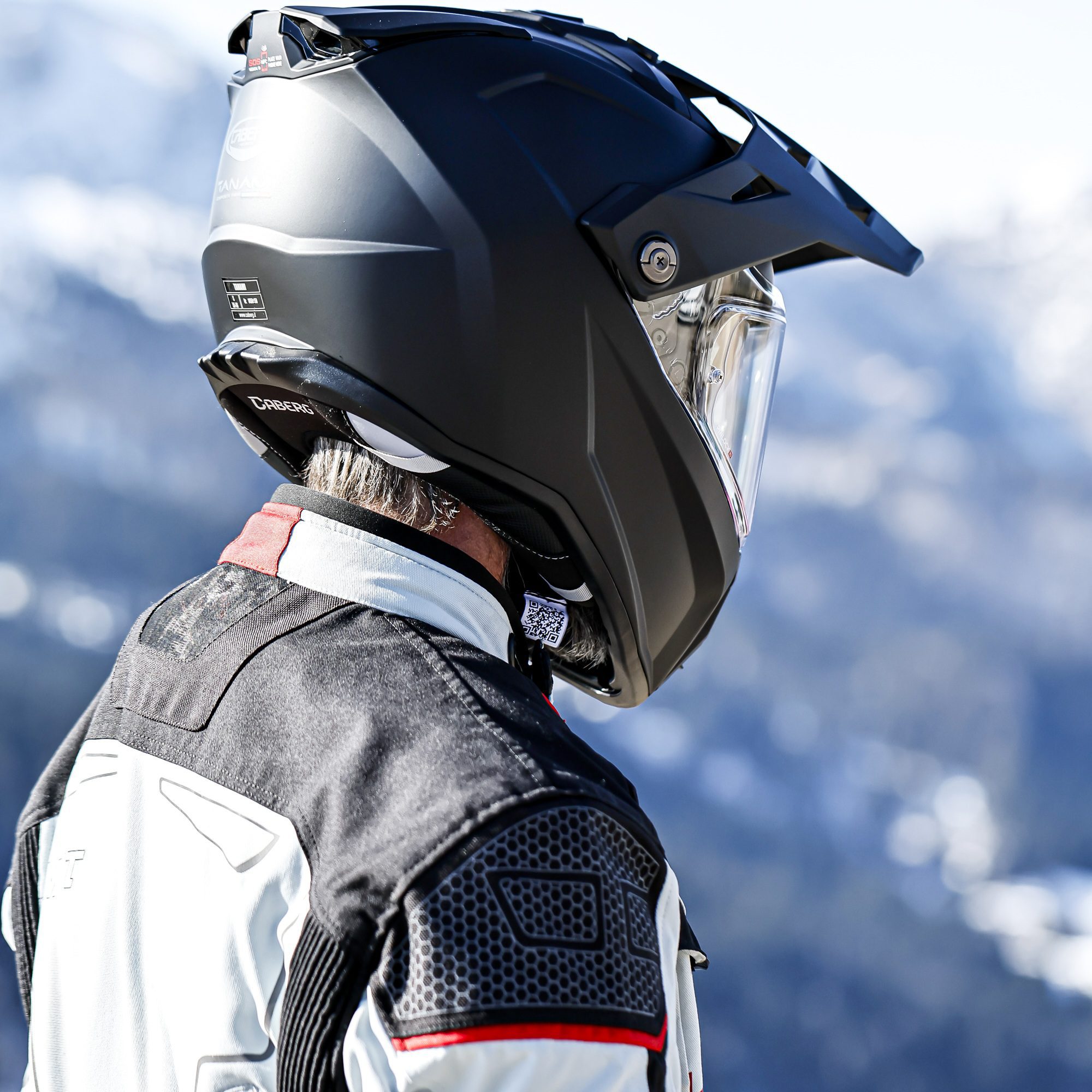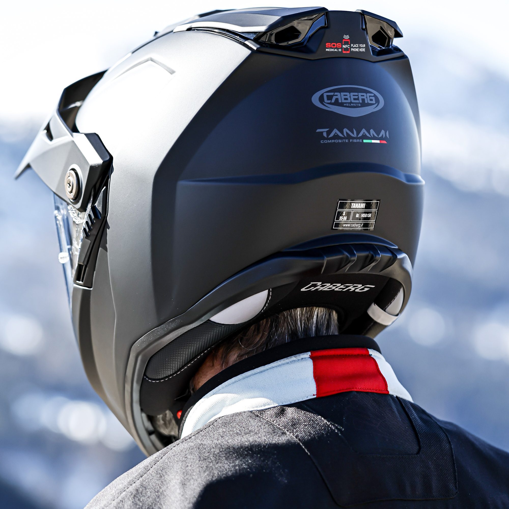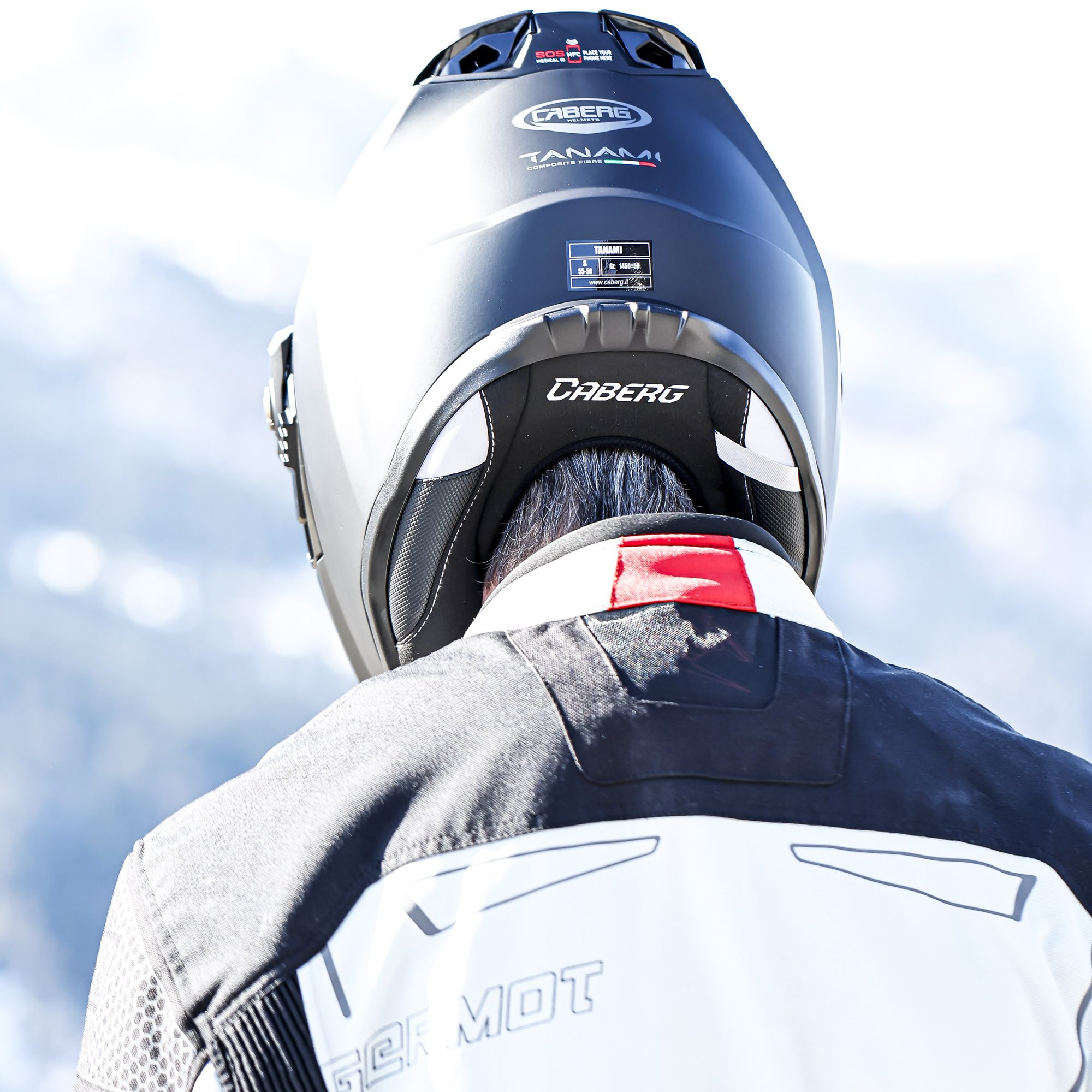 The Caberg Tanami Plain motorcycle helmet is Caberg’s flagship adventure motorbike helmet, constructed with fibreglass and available in two shell sizes for optimal comfort. An innovative ventilation system with quick release magnets allows you to effortlessly convert the riding helmet from an on-road to off-road set-up and vice versa in mere few seconds. Moreover it’s possible to mount a hydration tube inside the chin guard for those of us planning to ride all day long! Equipped with the Caberg SOS medical ID technology, the dual sport motorcycle helmet offers comfort and safety for every adventure.