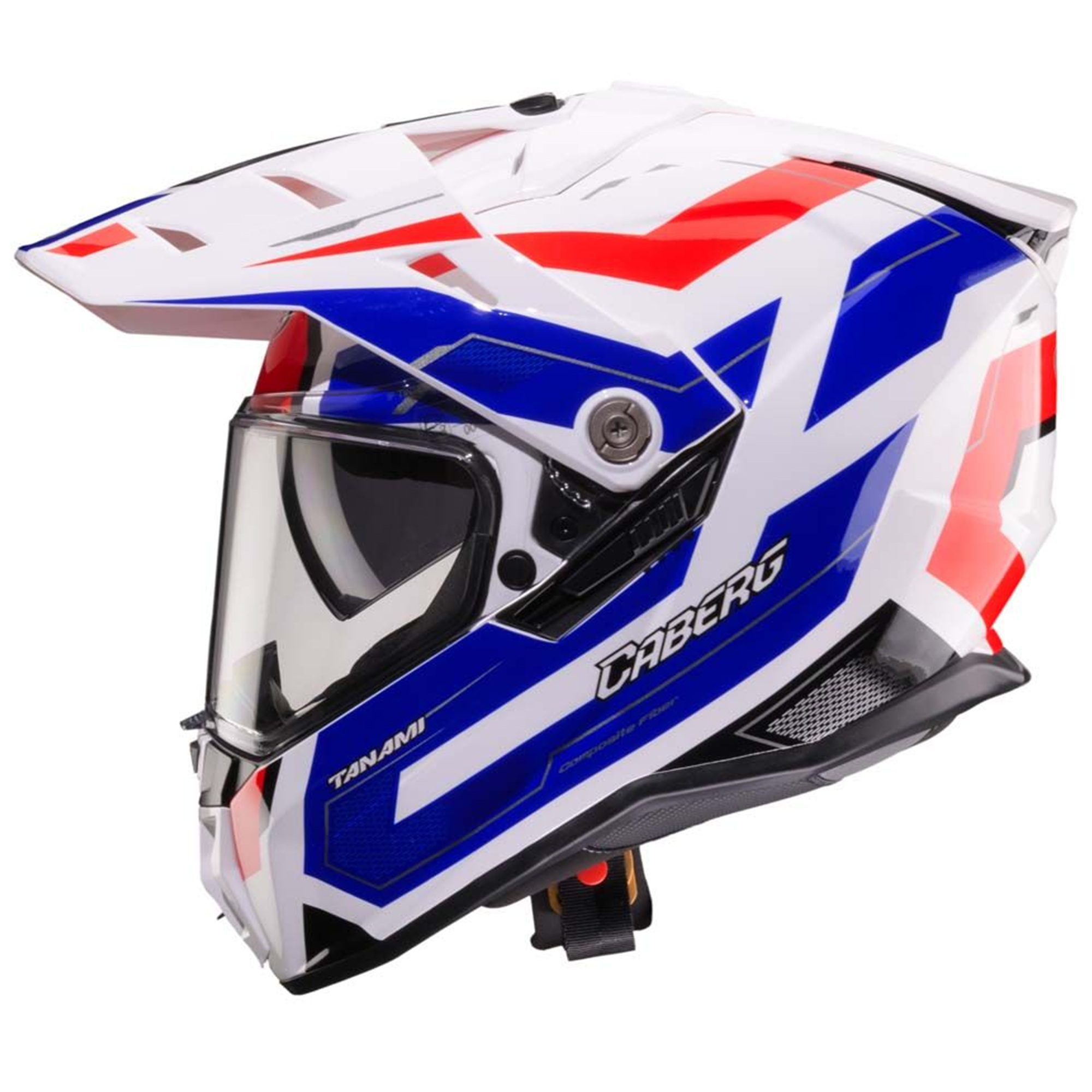 The Caberg Tanami motorcycle helmet is Caberg’s full-face on-off road helmet, available in two shell sizes made of fiber glass. An innovative ventilation system with quick release magnets that allows to convert the helmet from on to off-road and vice versa in a few seconds.