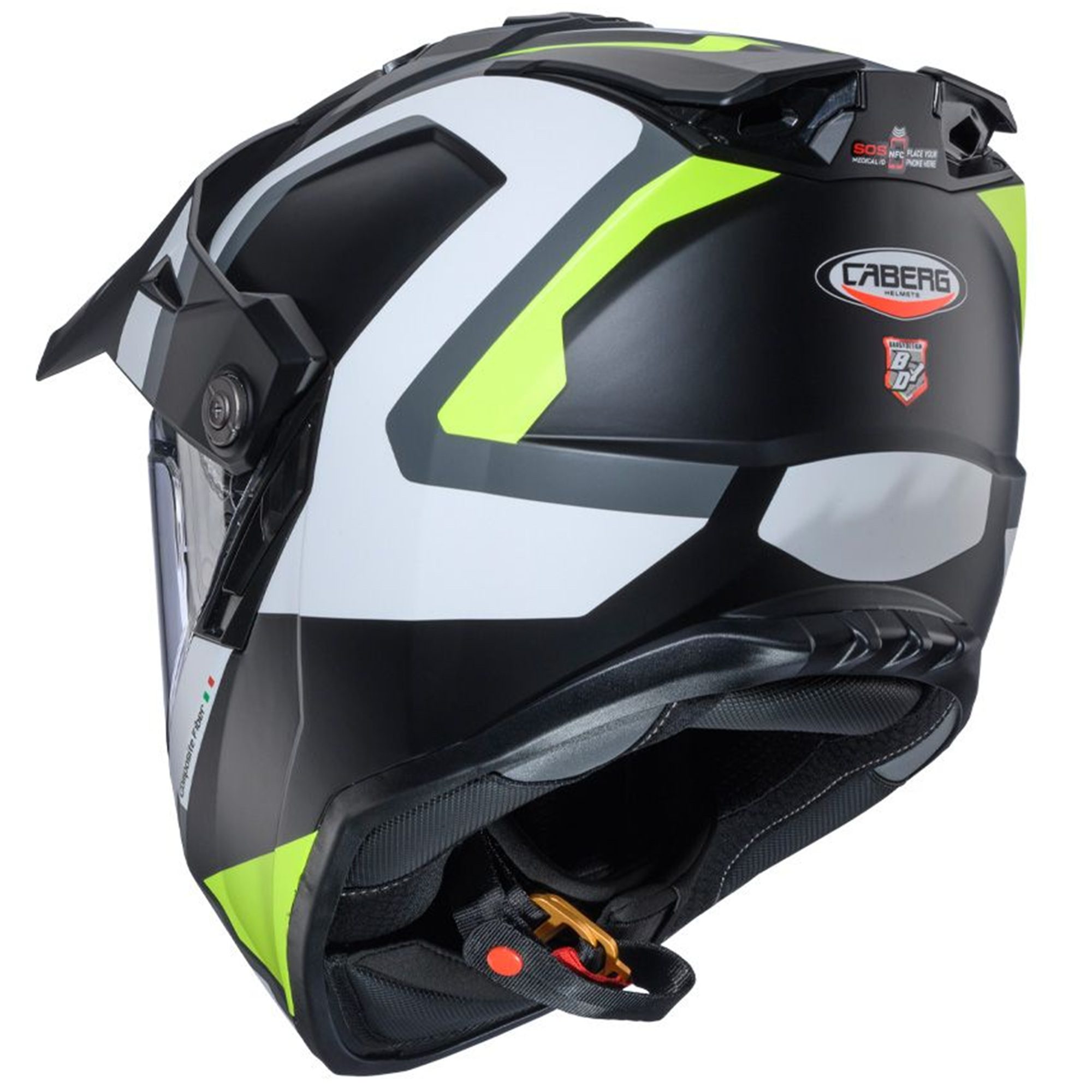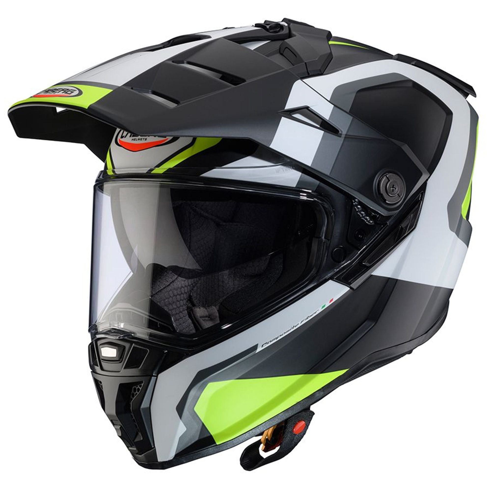The Caberg Tanami motorcycle helmet is Caberg’s full-face on-off road helmet, available in two shell sizes made of fiber glass. An innovative ventilation system with quick release magnets that allows to convert the helmet from on to off-road and vice versa in a few seconds.