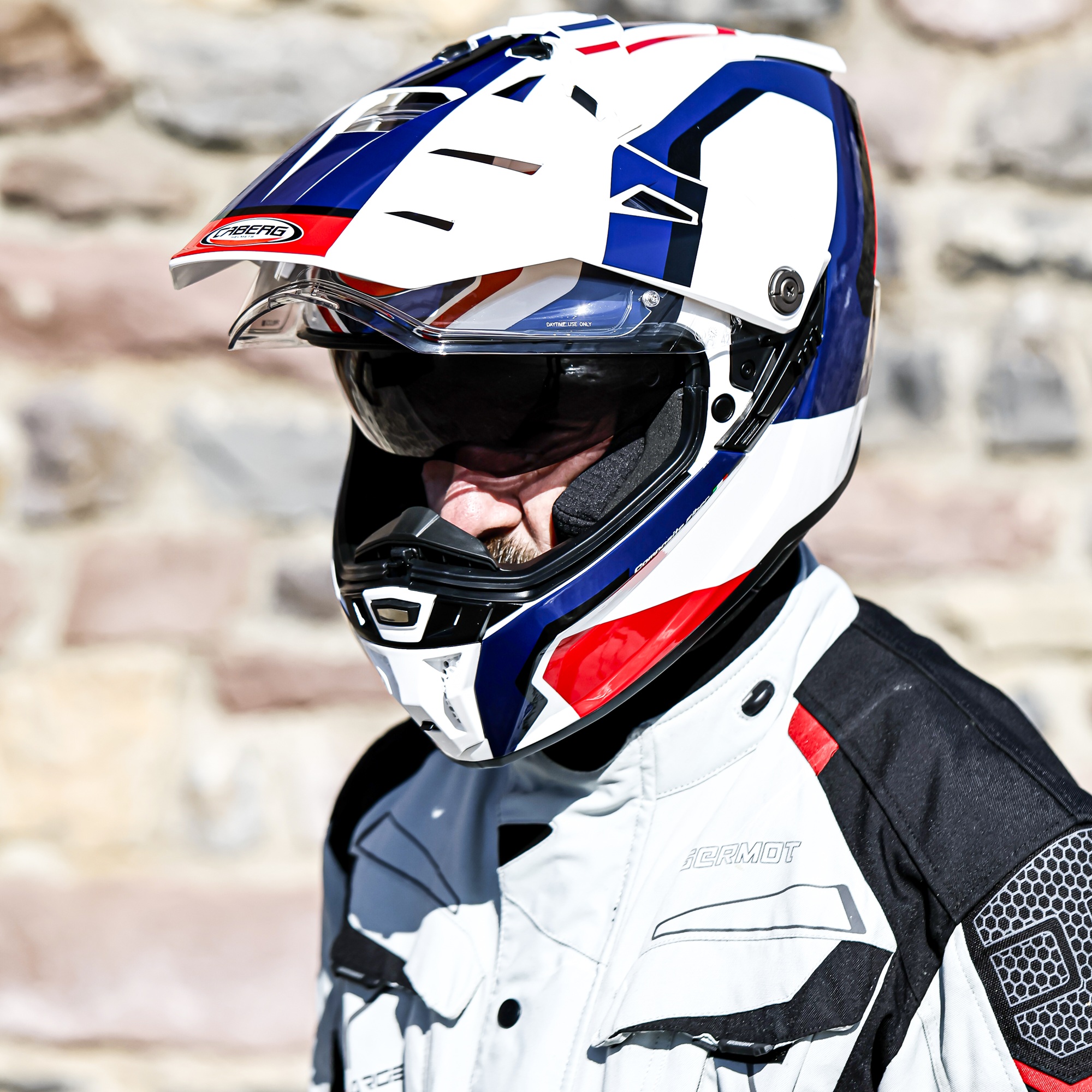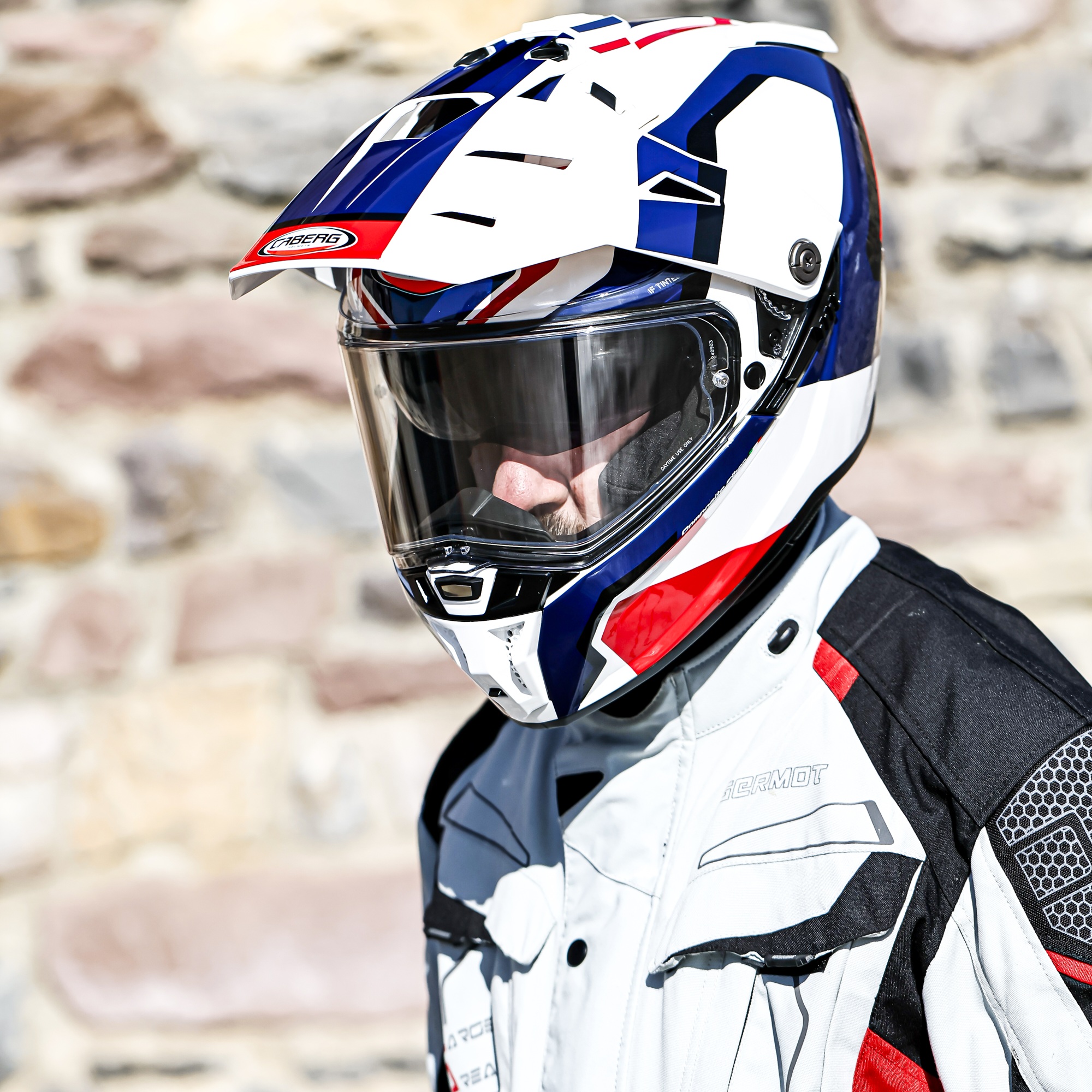 The Caberg Tanami motorcycle helmet is Caberg’s full-face on-off road helmet, available in two shell sizes made of fiber glass. An innovative ventilation system with quick release magnets that allows to convert the helmet from on to off-road and vice versa in a few seconds.