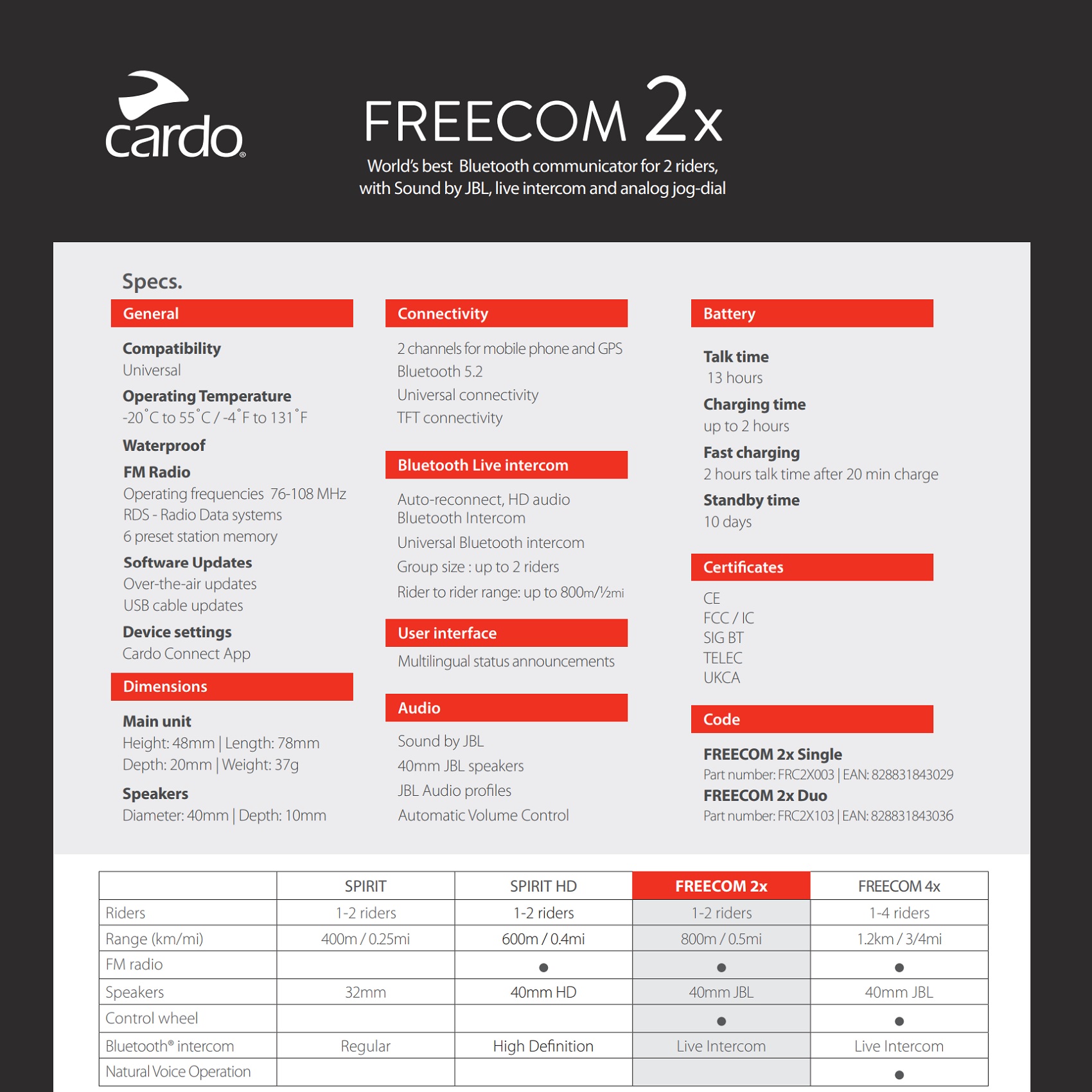 CARDO FREECOM 4X CARDO FREECOM 2X CARDO SPIRIT HD CARDO SPIRIT
