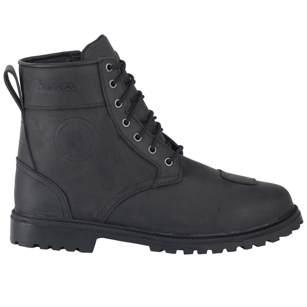 The Diora Renegade waterproof motorcycle boots are perfect for commuter and everyday riders looking for a vintage styled boot without breaking the bank! A waterproof and breathable Hipora membrane ensure that your feet stay dry and comfortable all year round, while a quality leather construction will continue to look great long after it’s first journey. A full lace up front and side zip allow for easy access and a rubber sole delivers fantastic feel.