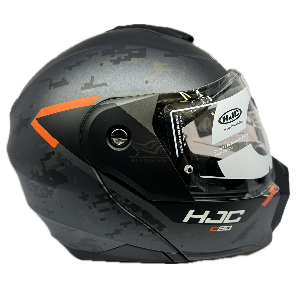 The HJC C80 plain Bult sport motorcycle helmet brings a new look to the HJC line-up. Designed to be used while riding off-road or on the street, the flip up motorbike helmet allows the rider to have multiple configurations to suit your riding needs.